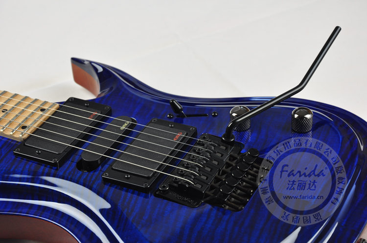 琴身:4A级虎斑枫木柄材:硬枫木指板:硬枫木拾音器:EMG双单双拾音器弦枕:铁制黑色 音点:绿珍贝接柄:5点锁接式背带扣:Lock "n Rock(快易扣)涂装:SBL