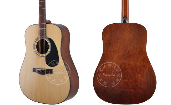 D-8 是 法丽达 D 系列最平价的款式,采用了西提卡云杉面板与非洲桃花心木背 / 侧板,及桃花心木琴柄做为搭配。当此琴在拨弦弹奏时可呈现上乘的清析度与冲击性,让人无法相信这是法丽达最平价的吉他声音.
