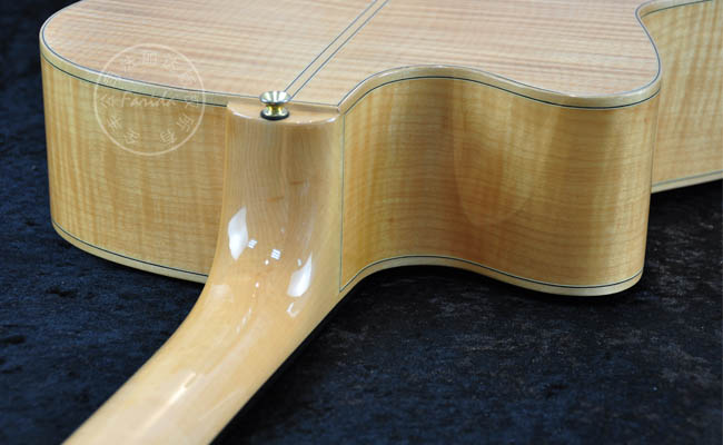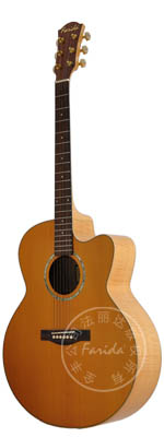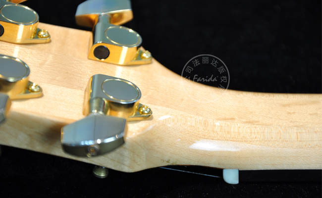 华丽高雅的 Jumbo 型单缺角款式,J-52CE 选用西提卡云杉做为面板, 4A 级虎斑枫木做为背 / 侧板,搭配美国 FISHMAN 拾音器,可确保明亮清晰的音质输出,金色弦卷与高级绿真贝音孔口轮镶嵌,都是以极尽豪华的配置为宗旨。