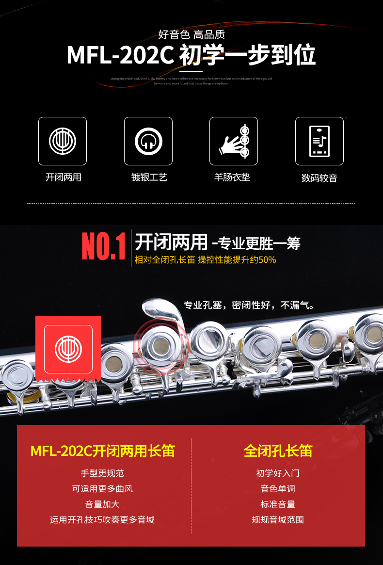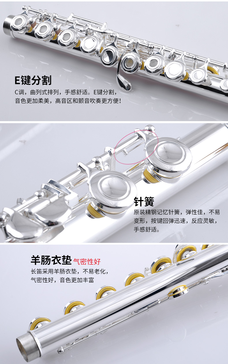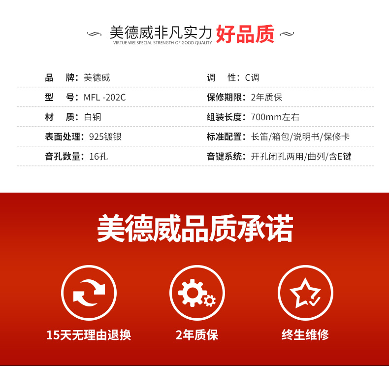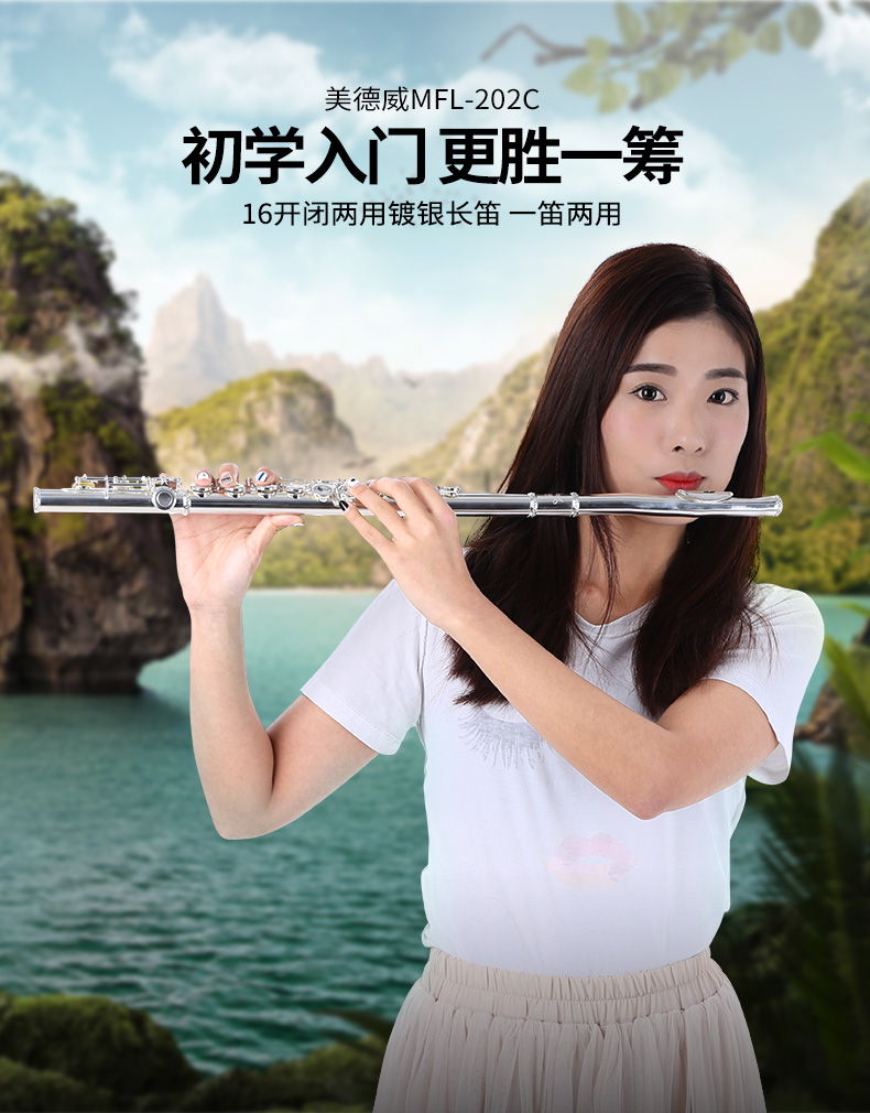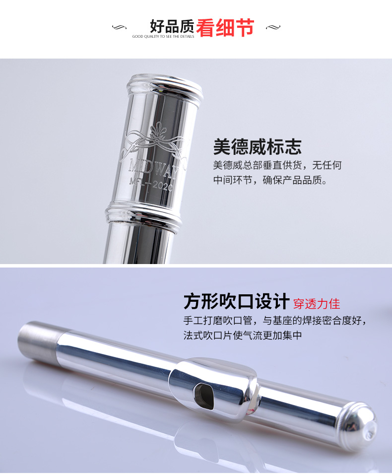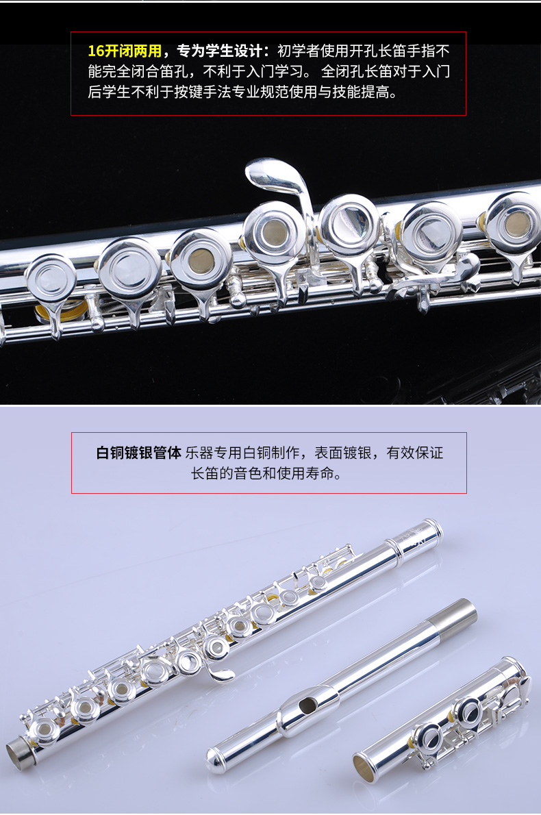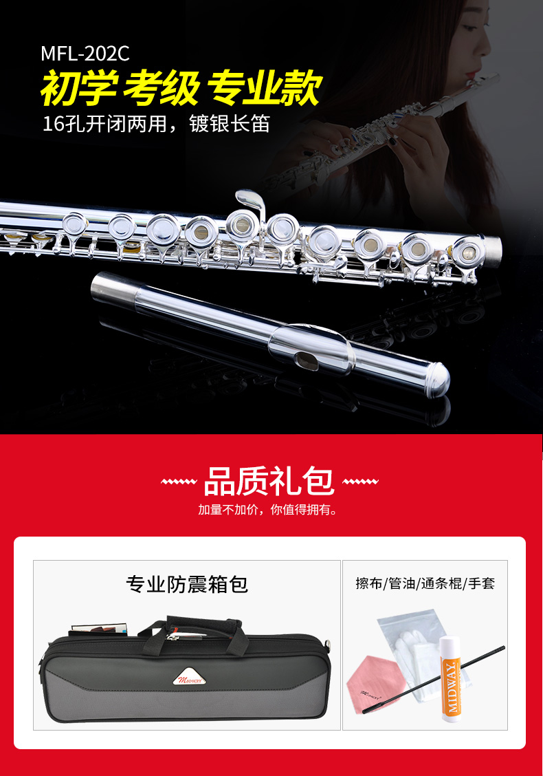 商品名称:美德威MFL-202C 16孔开闭孔镀银长笛乐器初学笛子女学生成人乐器