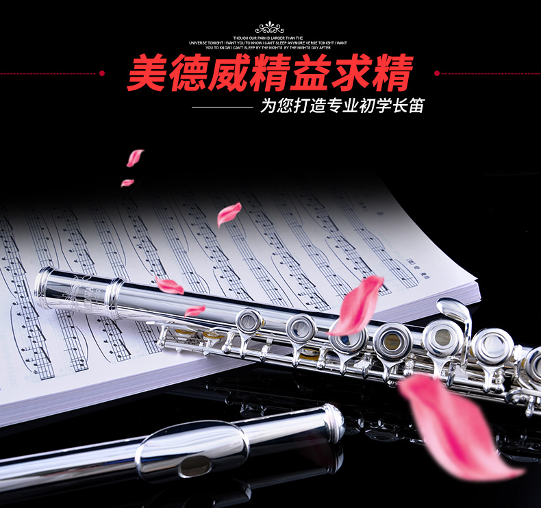 美德威MFL-202C 16孔开闭孔镀银长笛乐器初学笛子女学生成人乐器
