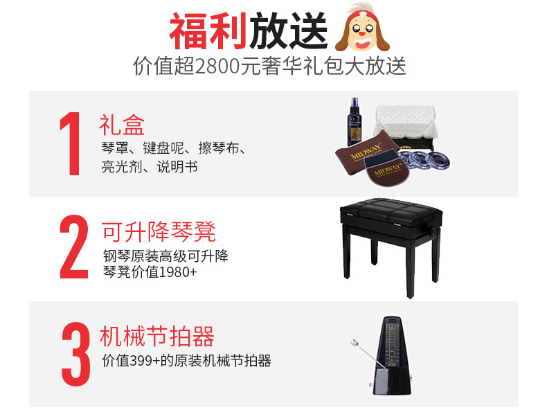 商品名称:美德威钢琴初学者家用立式钢琴考级 练习钢琴 全新成人儿童UM-21