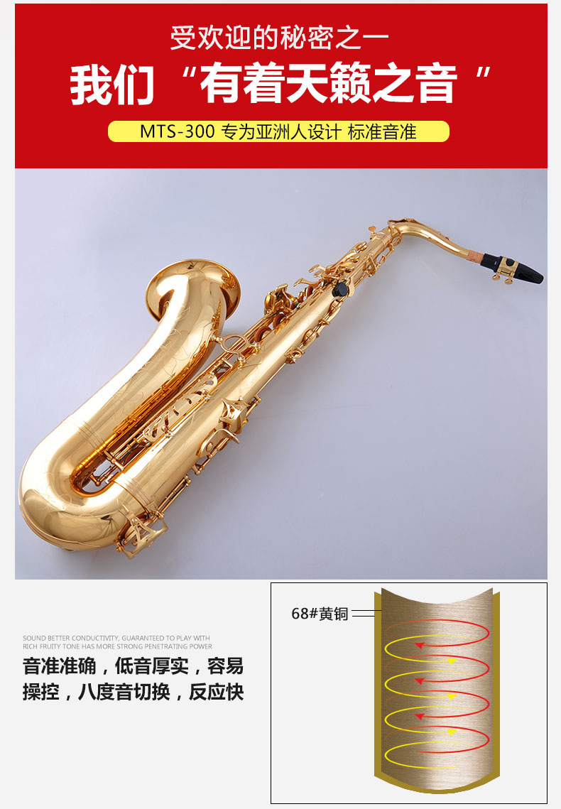 商品名称:萨克斯 美德威乐器MTS-300 降B调次中音萨克斯风管 成人初学者