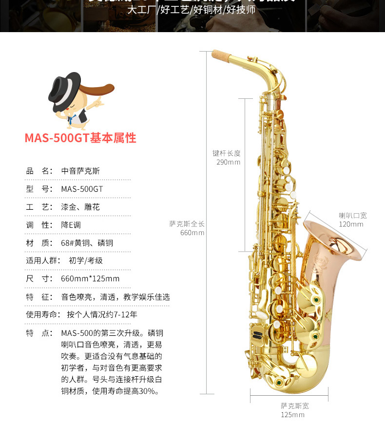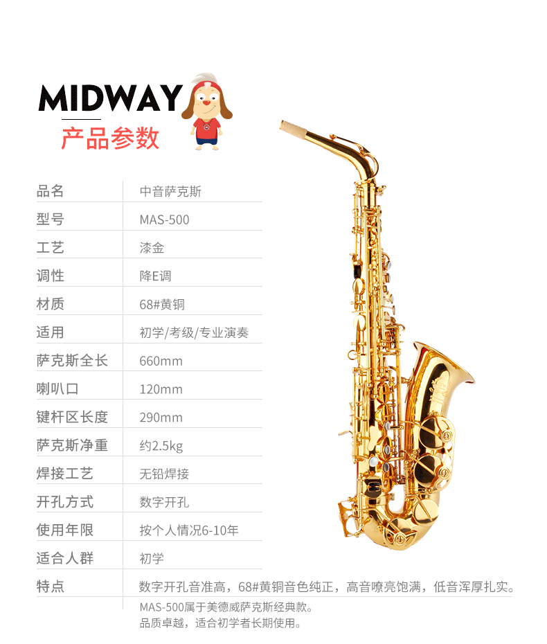 商品名称:美德威降E调中音 萨克斯初学者 成人儿童黄铜管乐器风考级演奏款