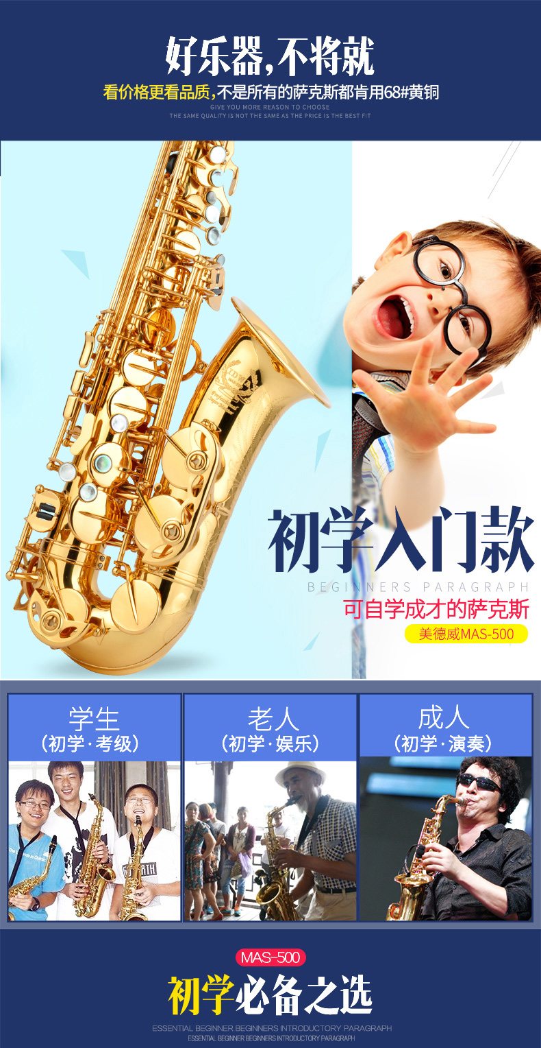 美德威降E调中音 萨克斯初学者 成人儿童黄铜管乐器风考级演奏款