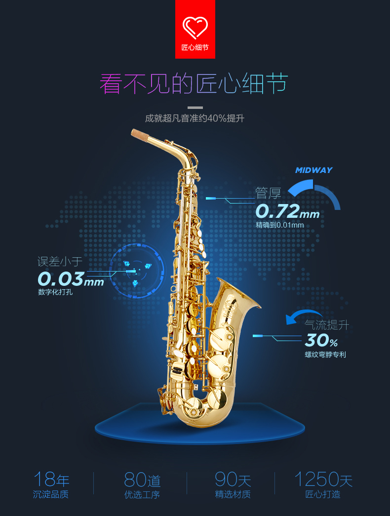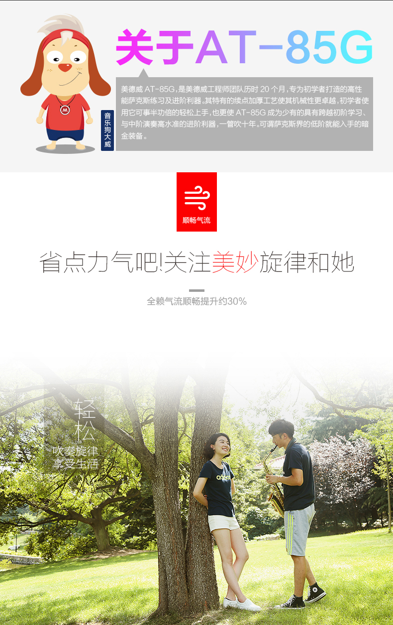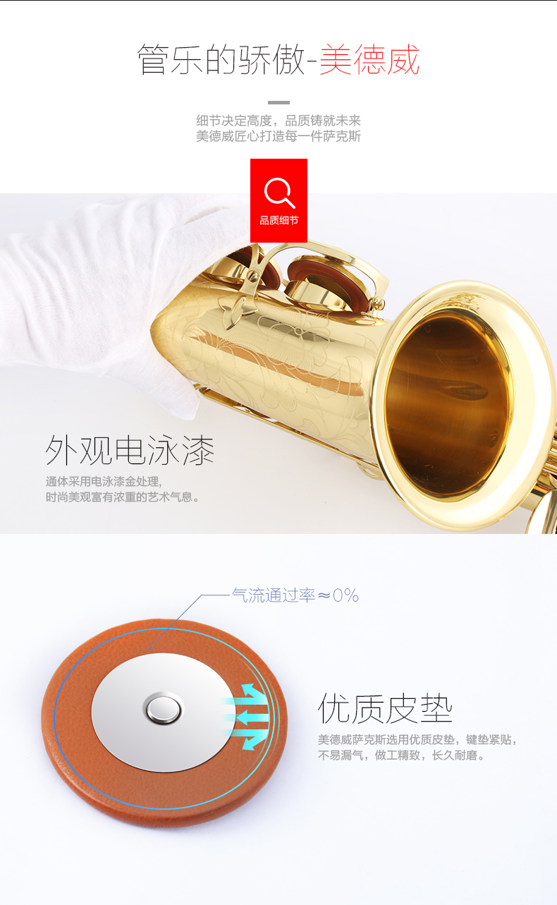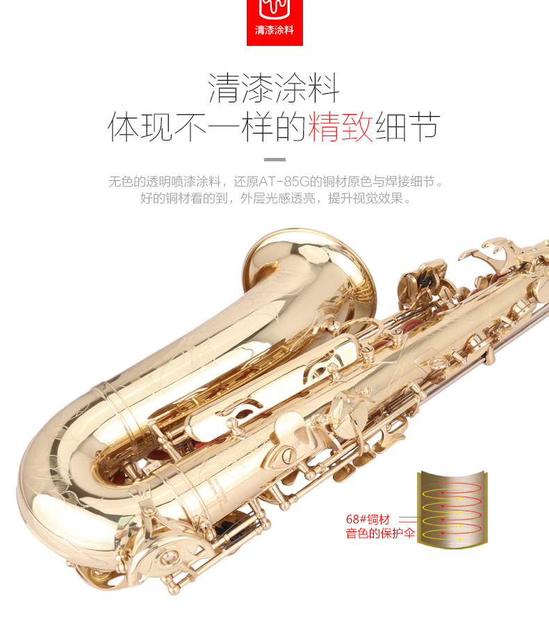 商品名称:美德威萨克斯乐器 降E调中音萨克斯风/管AT-85G配哨片笛头初学者