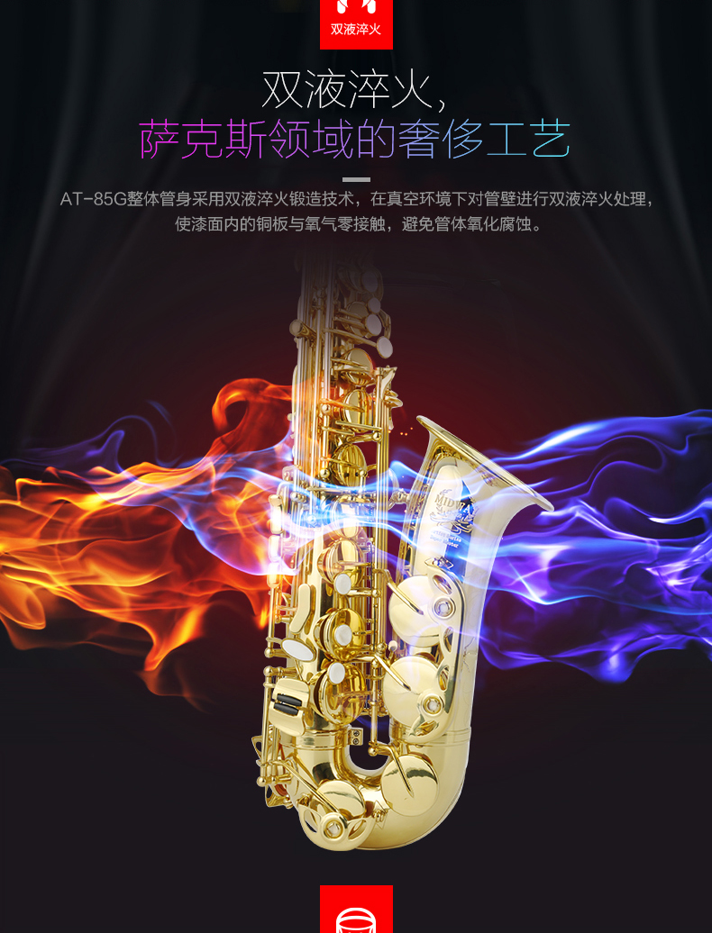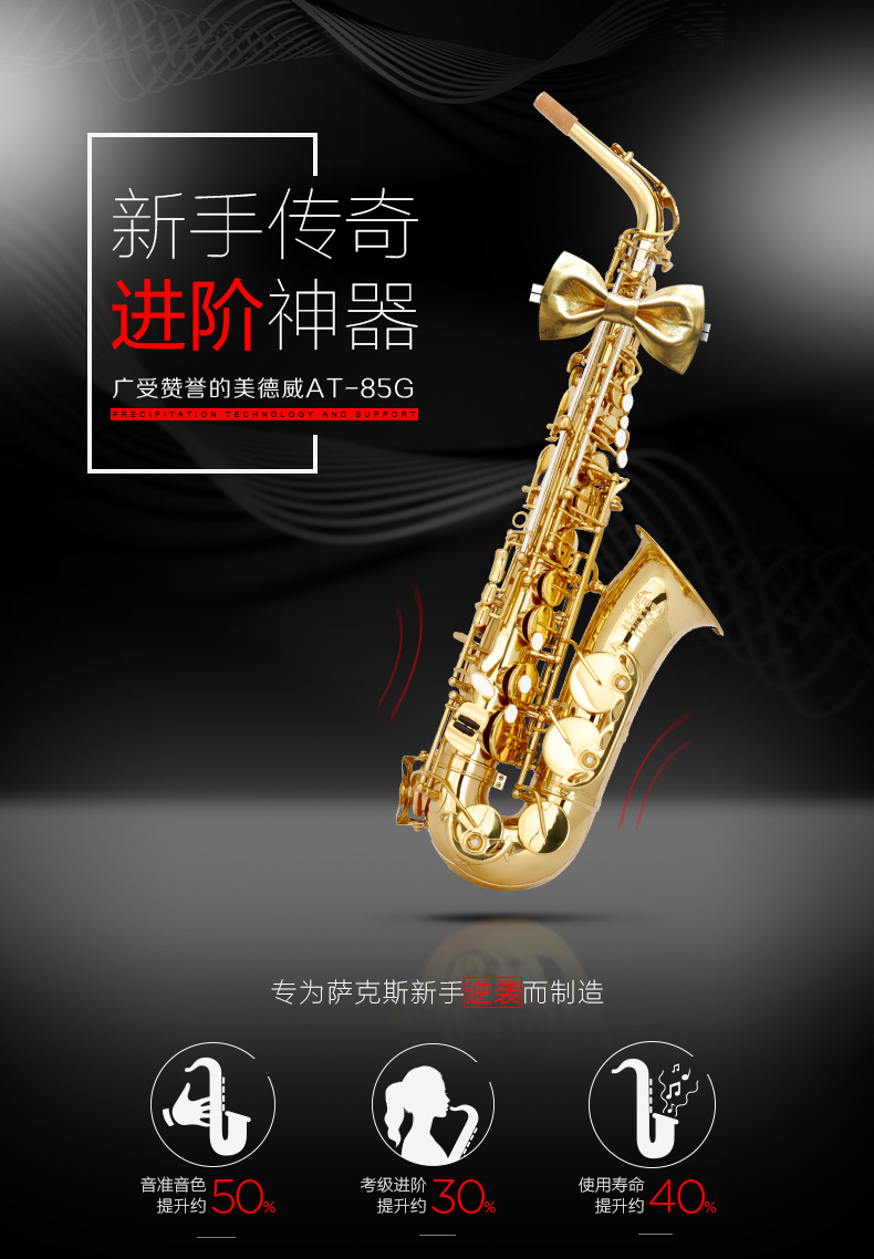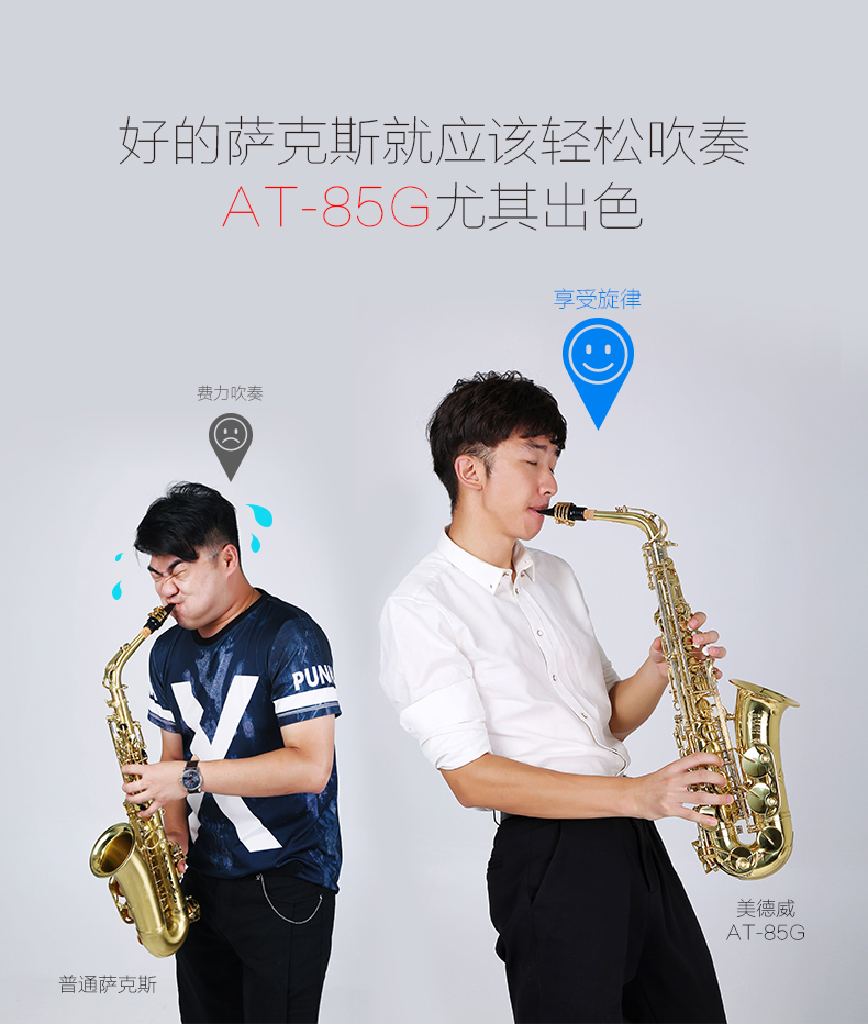 美德威萨克斯乐器 降E调中音萨克斯风/管AT-85G配哨片笛头初学者