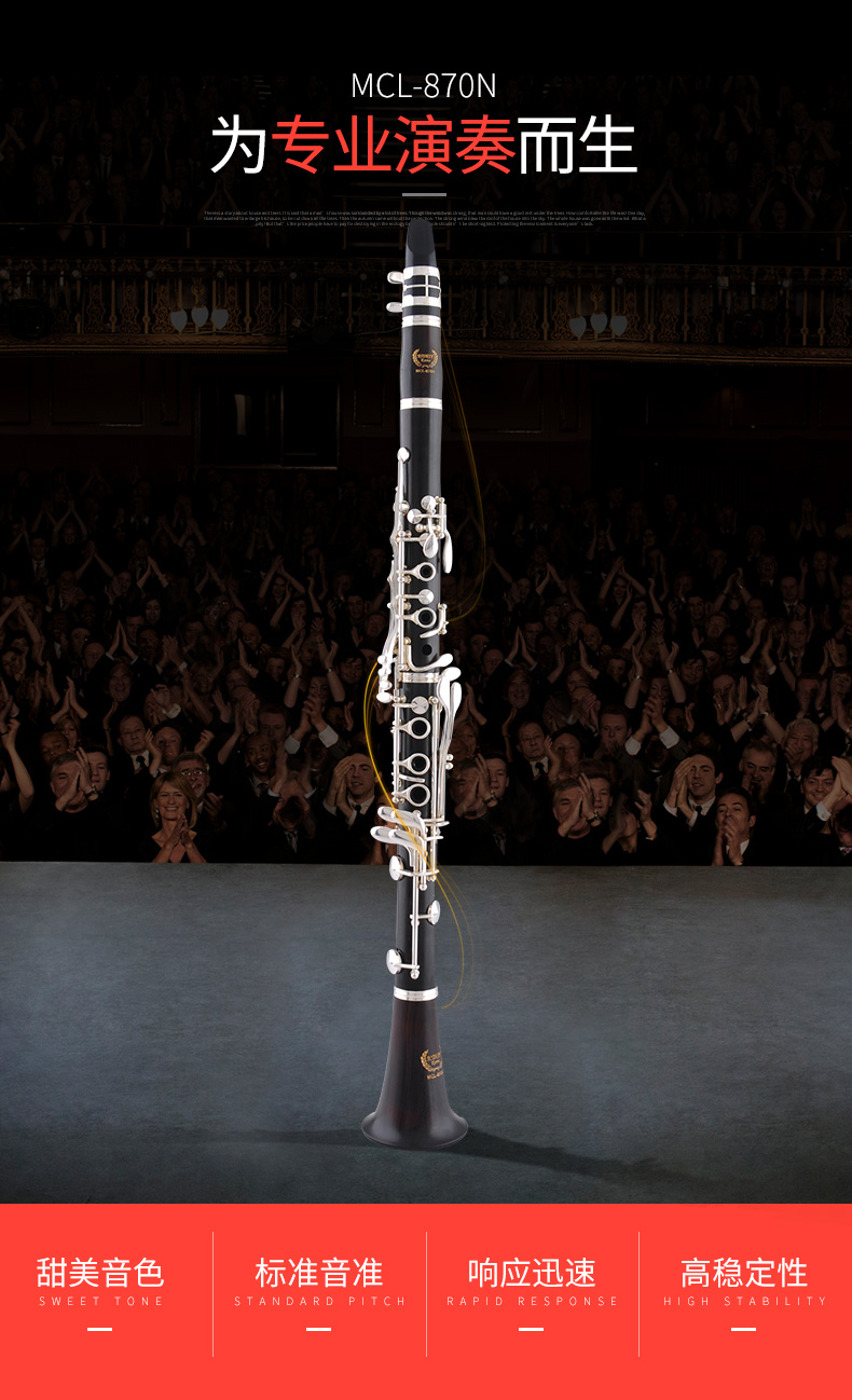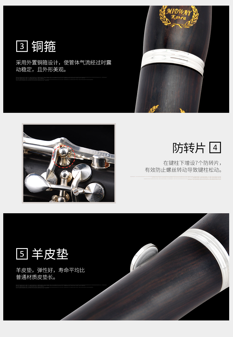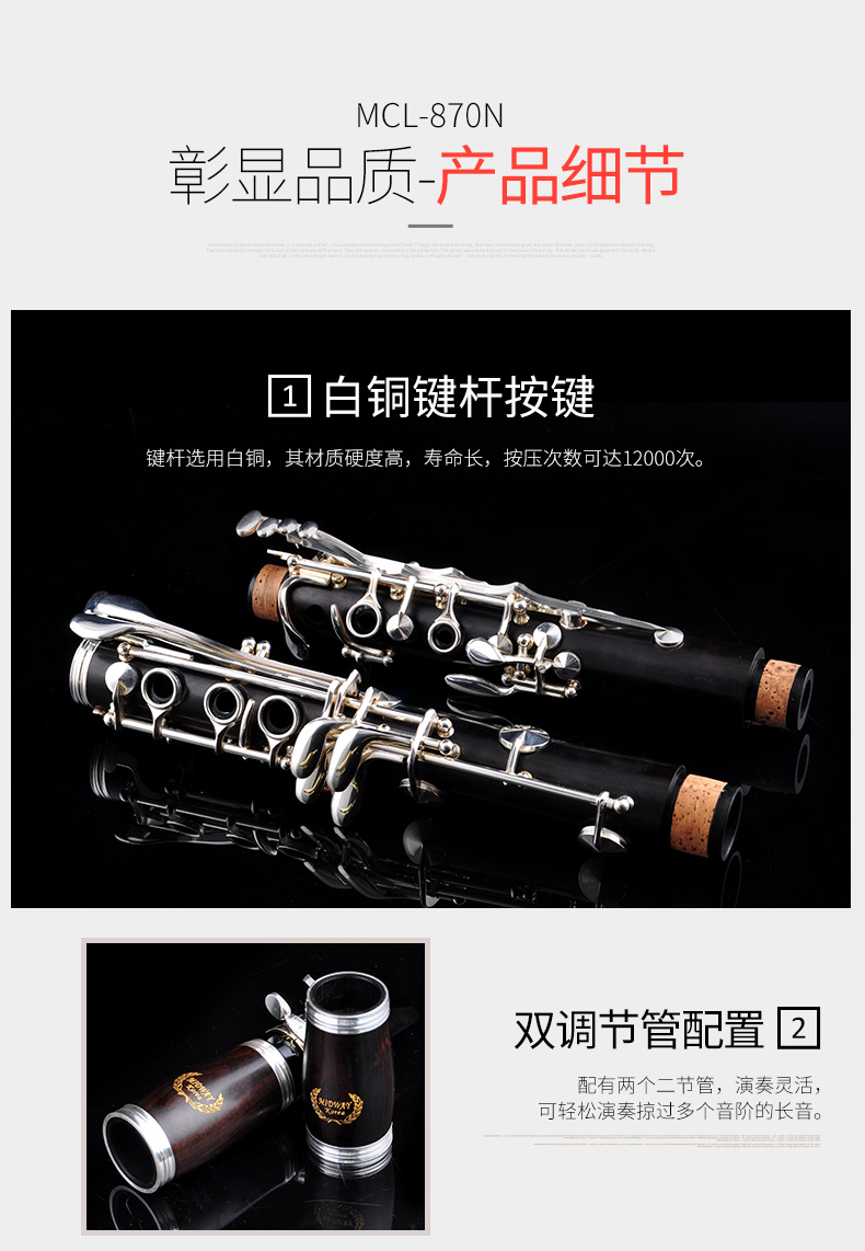商品名称:黑管 MCL-870N单簧管 B调乌木黑管乐器 单簧管乐器 美德威