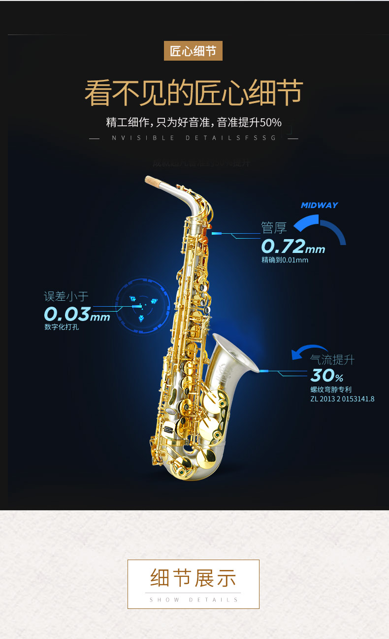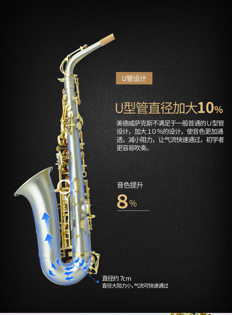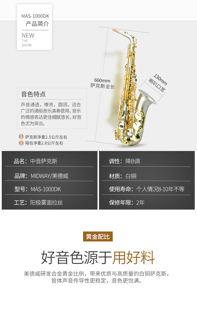 商品名称:萨克斯 美德威乐器 MAS-1000DK降E调拉丝萨克斯 中音萨克斯
