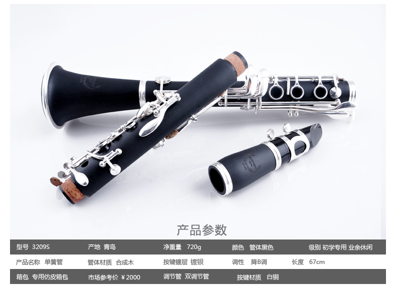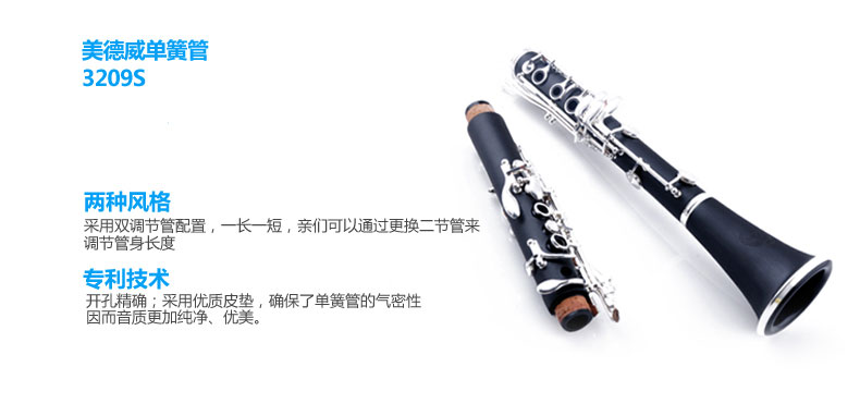 商品名称:单簧管 美德威单簧管3209S 降b调合成木黑管乐器 黑管乐器 黑管