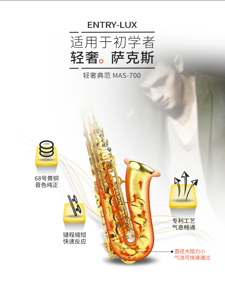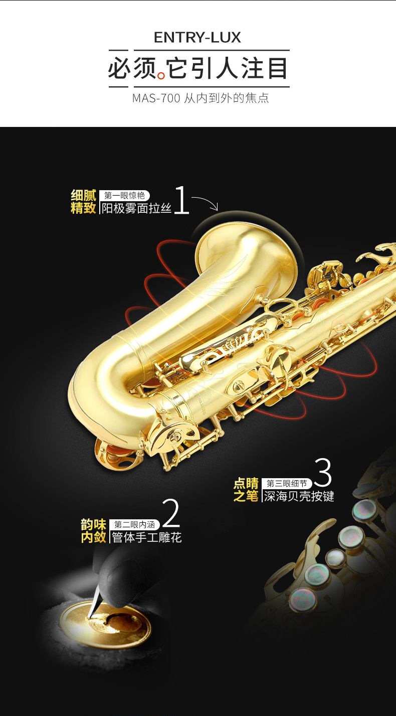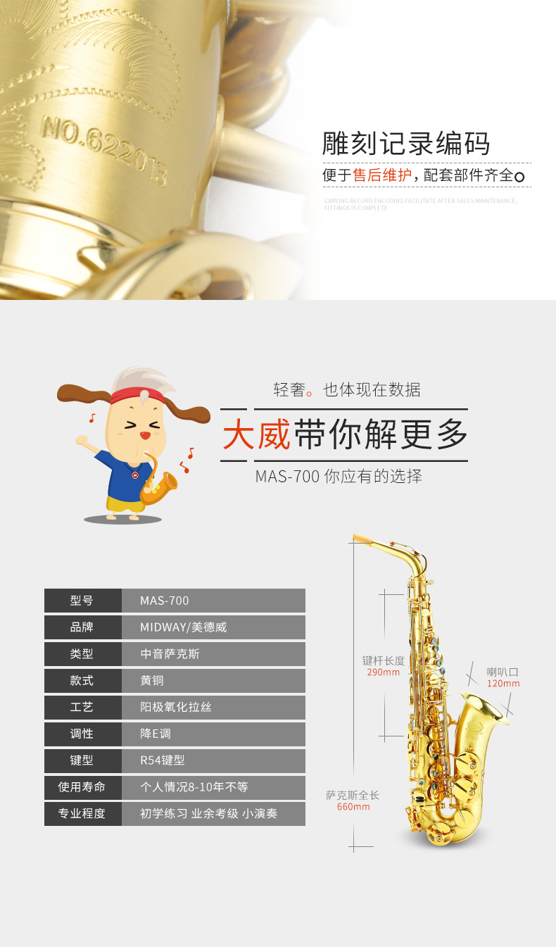 商品名称:萨克斯 MAS-700 降E中音萨克斯风/管 美德威乐器 中音萨克斯