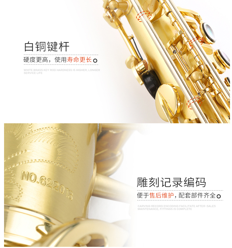 拉丝萨克斯,升级版,白铜键杆更耐用