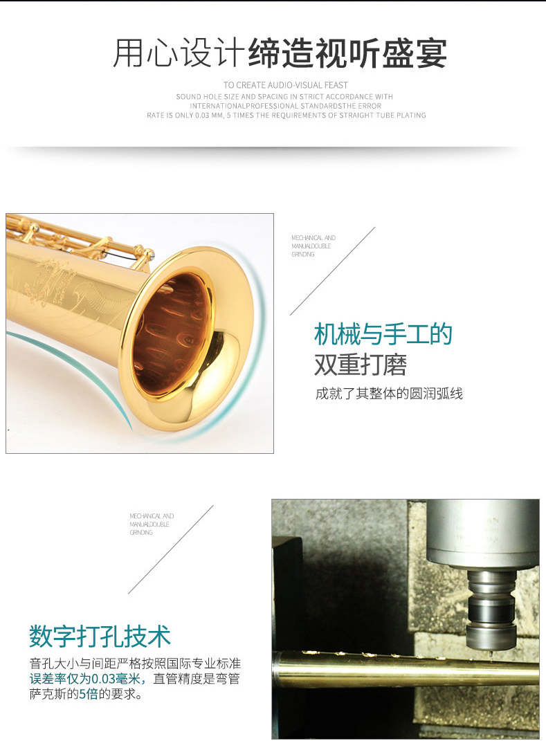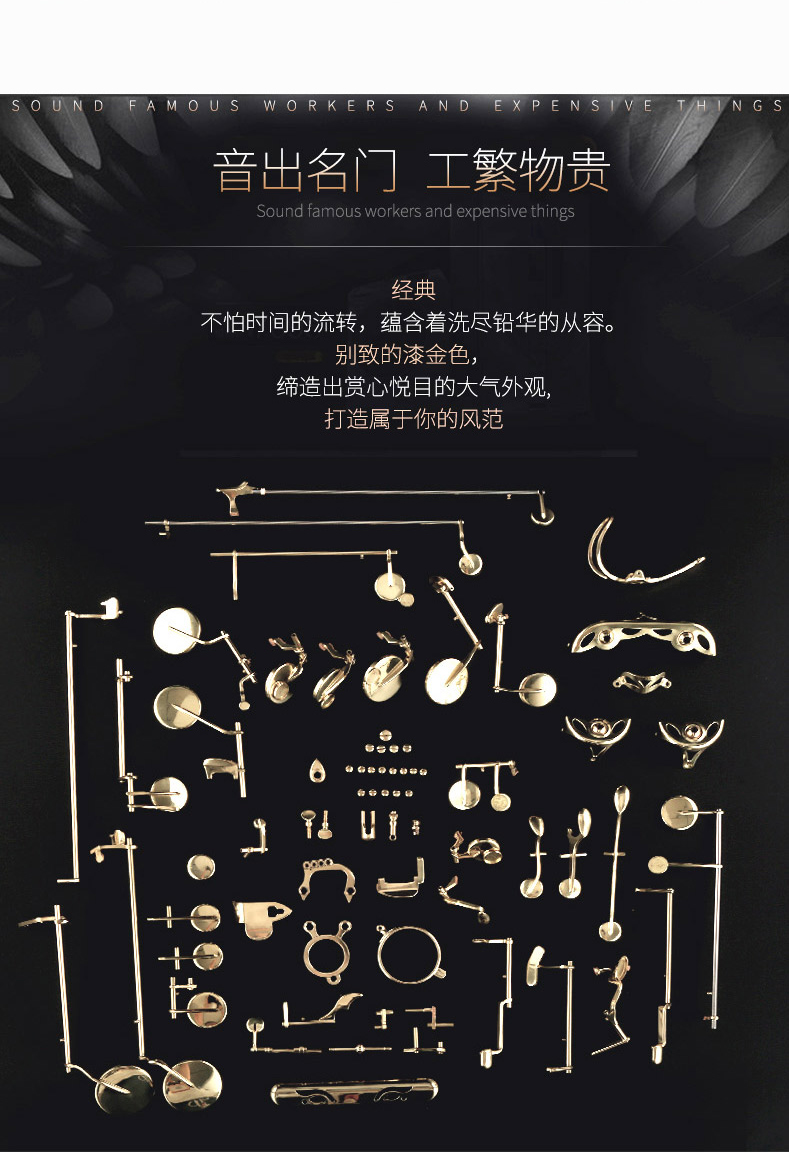 金音乐器 低音萨克斯 降B调 JYBB-A600G 电泳金 唯一厂家自营防伪