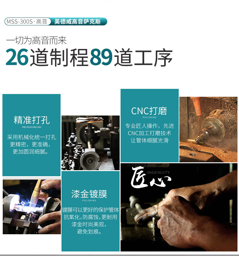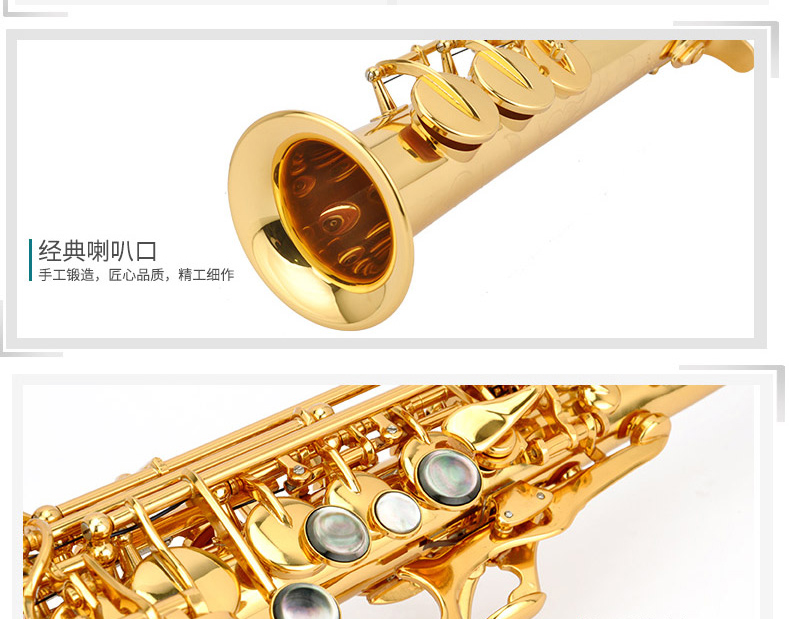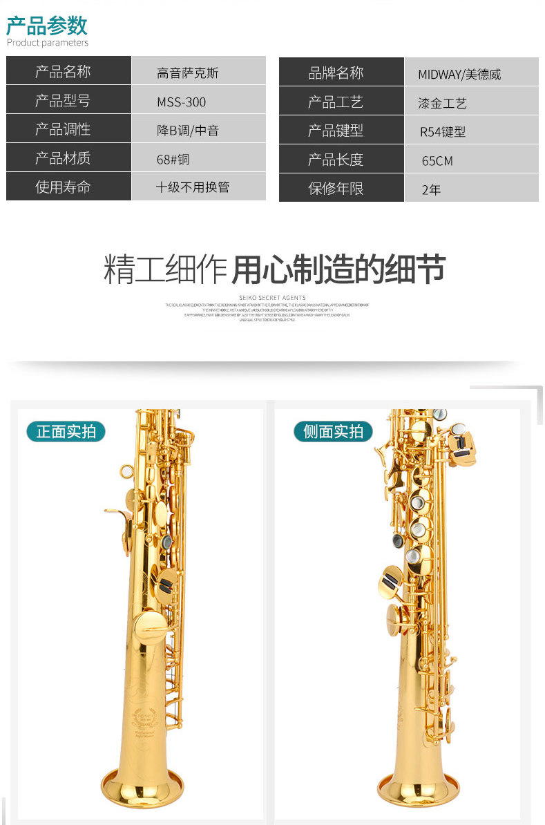 商品名称:高音萨克斯 美德威乐器 降B调高音漆金萨克斯风乐器 萨克斯
