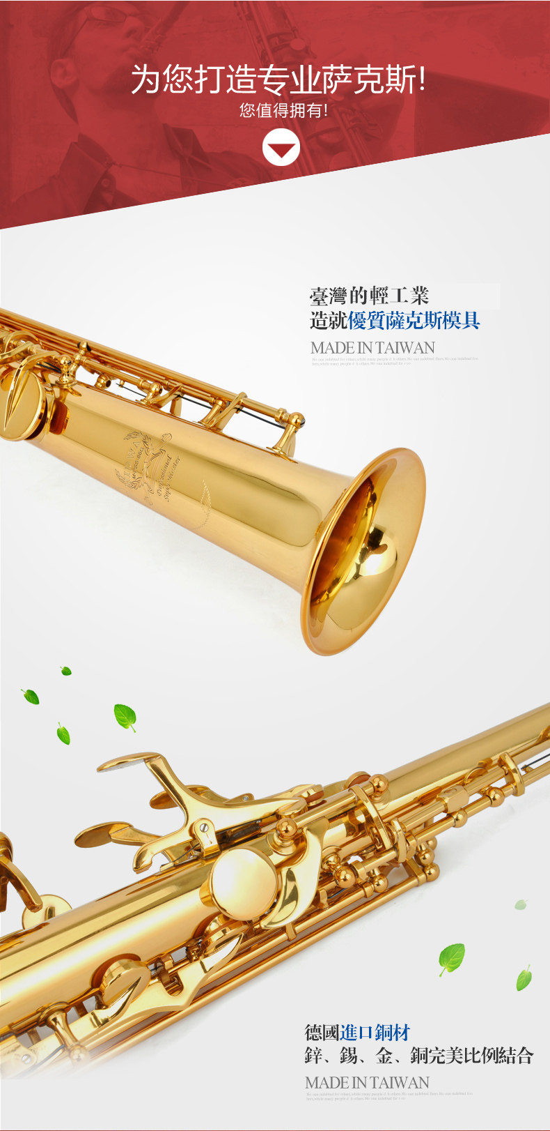 商品名称:高音萨克斯 美德威M.PSS-86G 台湾原装 降B调高音一体直管 萨克斯