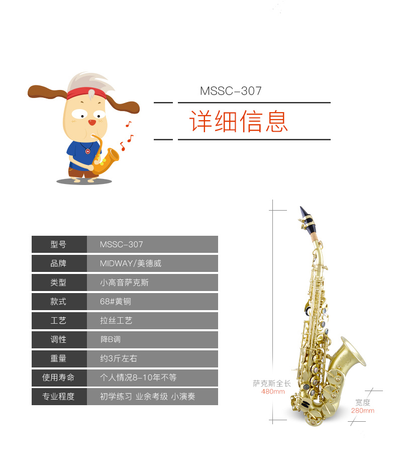 商品名称:MSSC-307儿童萨克斯 高音萨克斯风 小高音弯管萨克斯管
