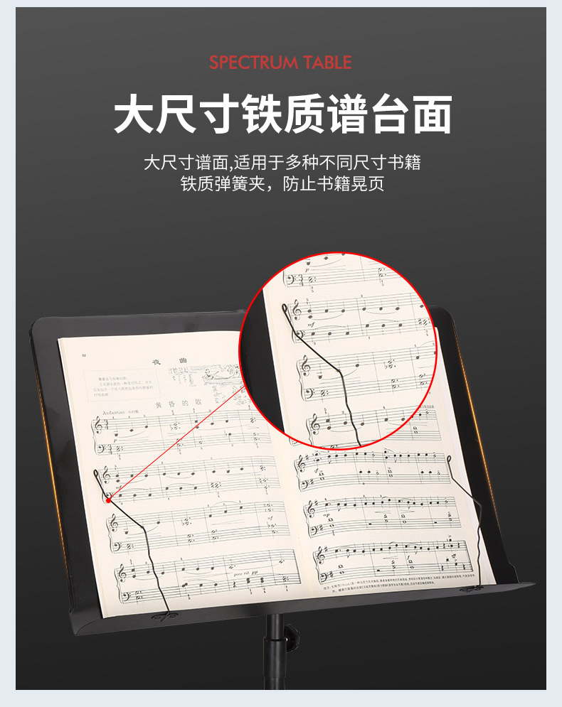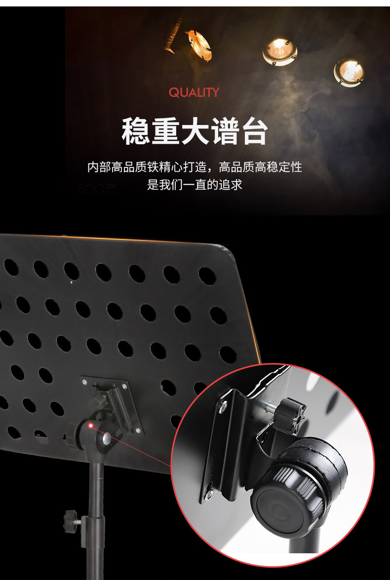 商品名称:谱架 乐谱架 萨克斯/长笛/单簧管大谱台 高度可调节 美德威乐器