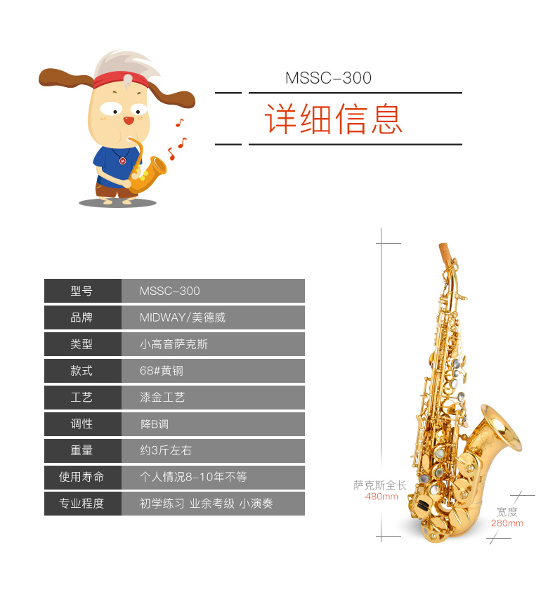 商品名称:小高音儿童型萨克斯 高音弯管萨克斯风/管 美德威乐器