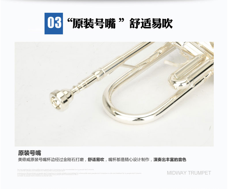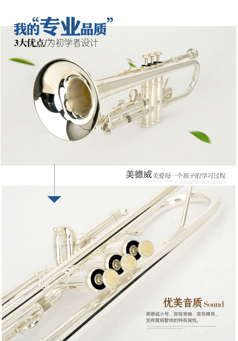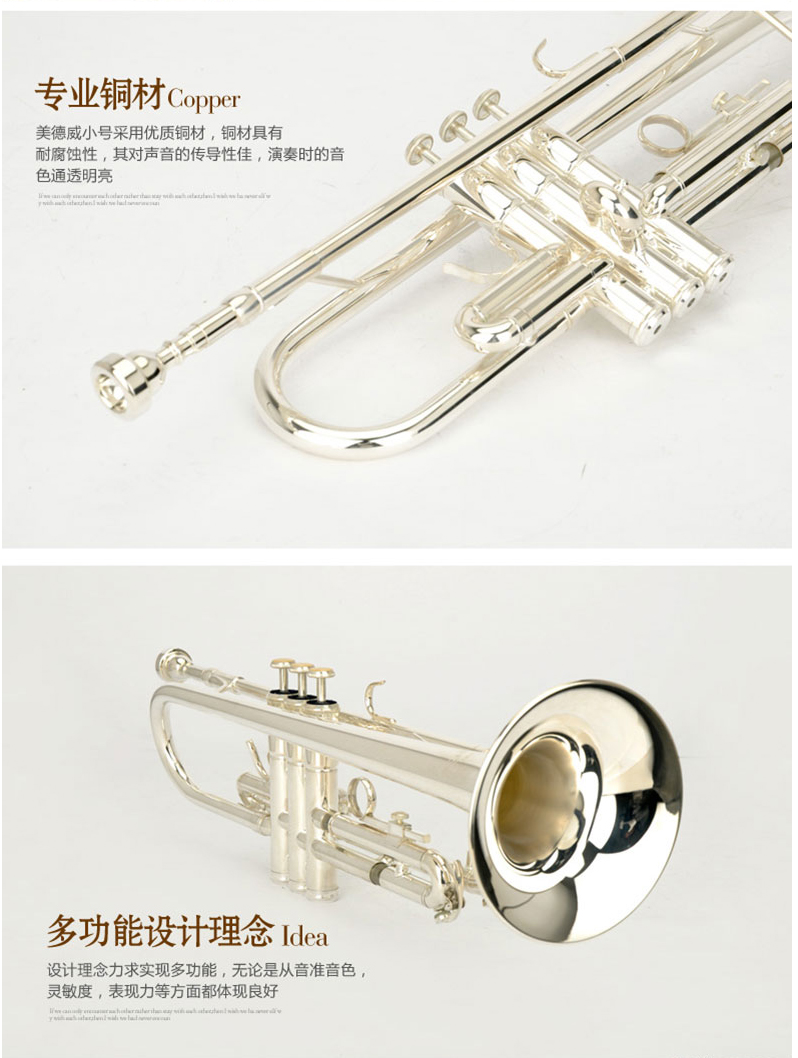商品名称:小号乐器 演奏级 降B调小号镀银小号 美德威乐器MTR-H7