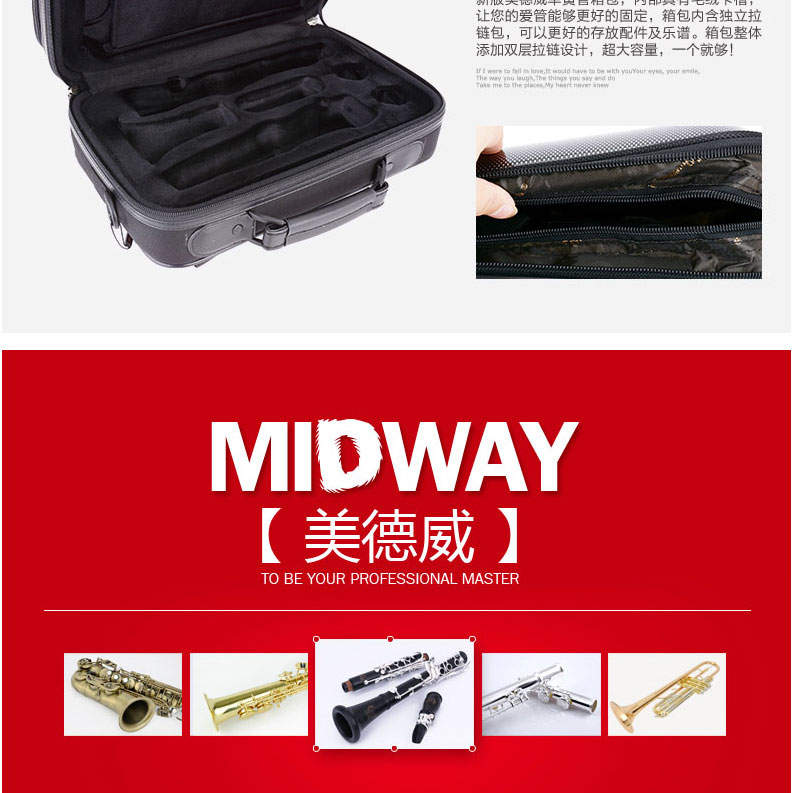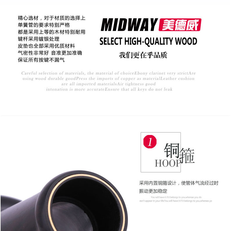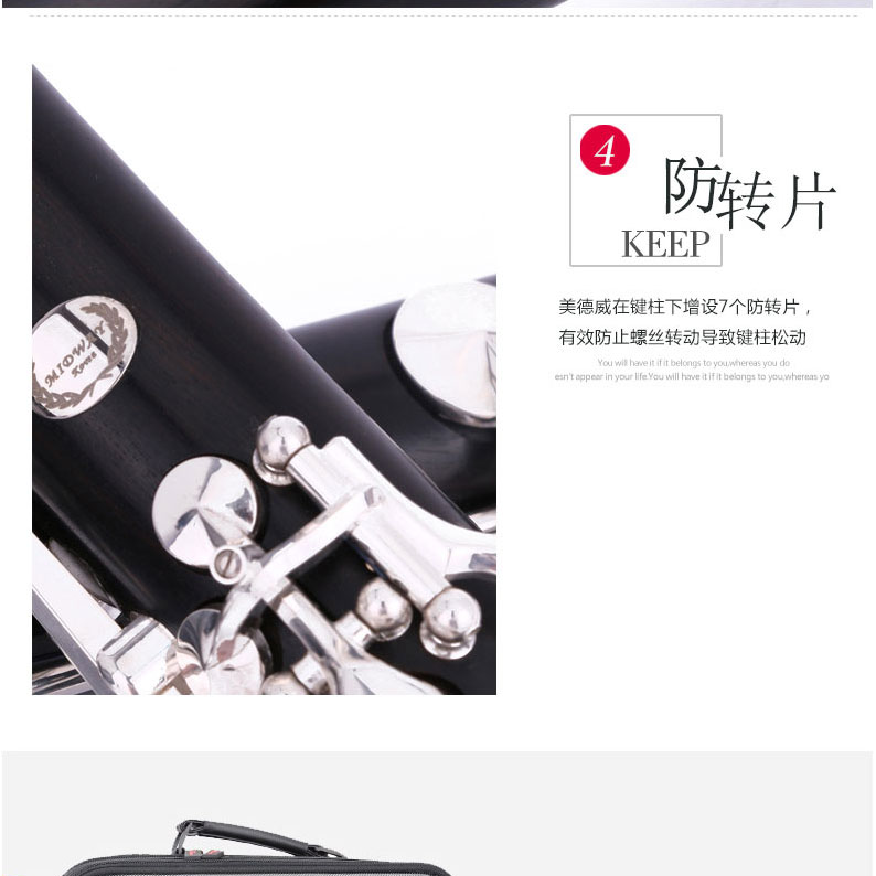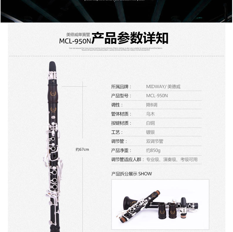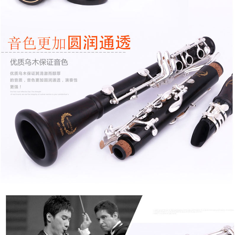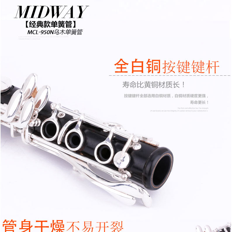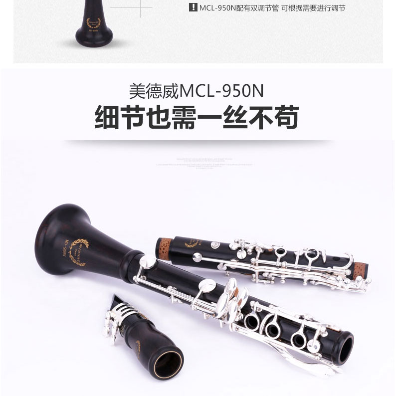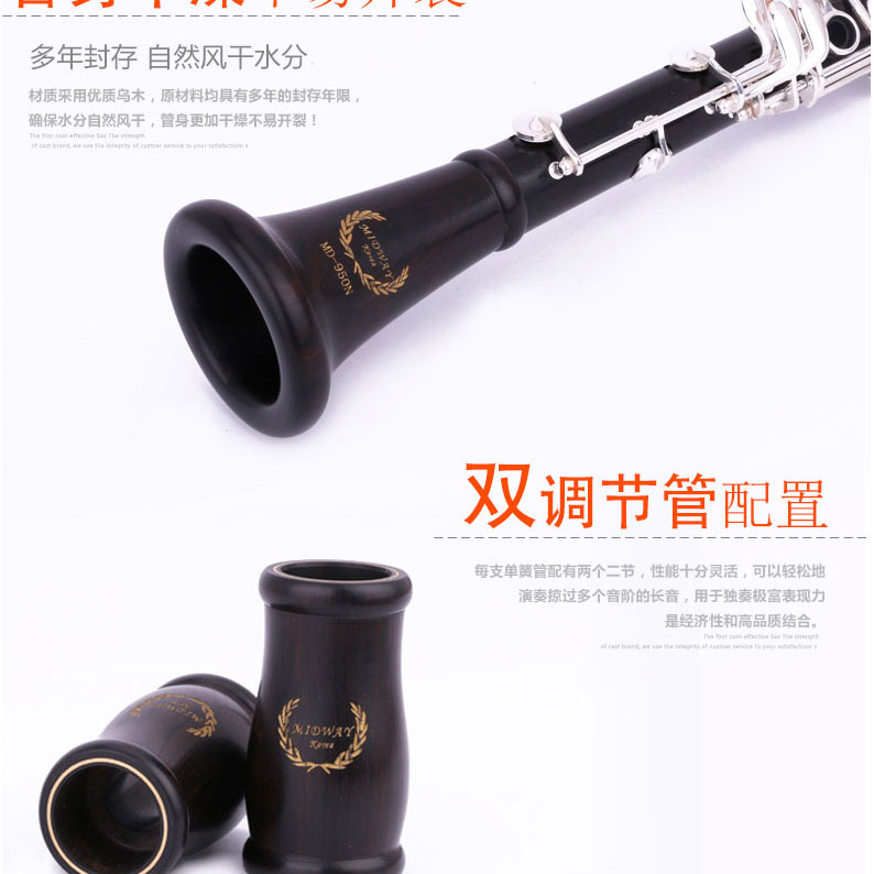 商品名称:美德威乌木单簧管 MCL-950N 黑管 降B调乐器 进口乌木管体