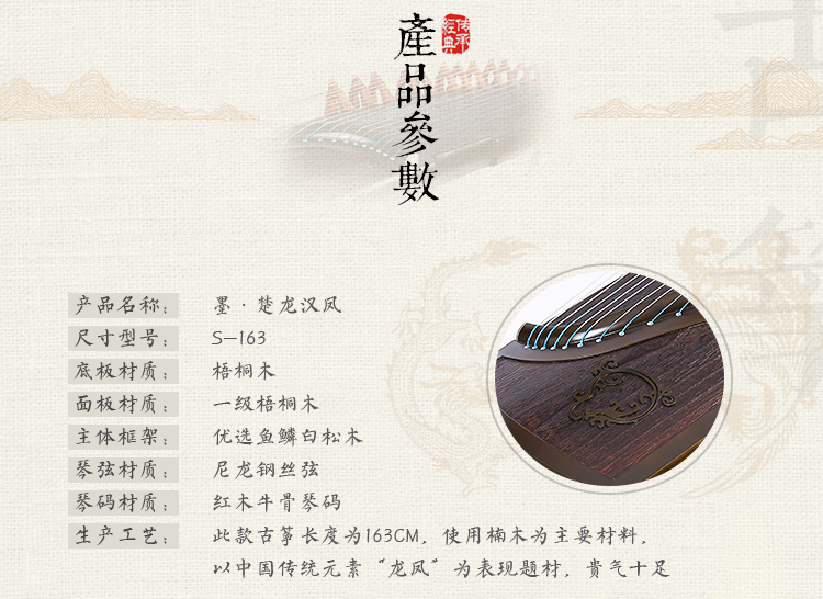 商品名称:美德威楚龙汉凤 古筝梧桐木红木牛骨琴码 全套配件扬州发货