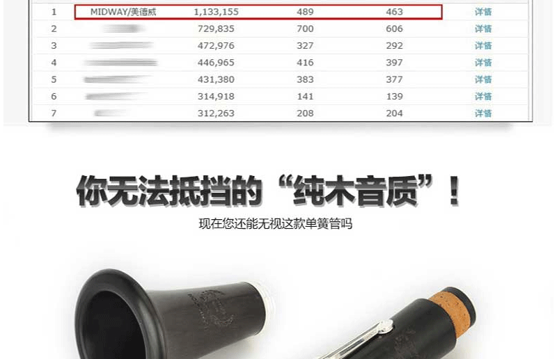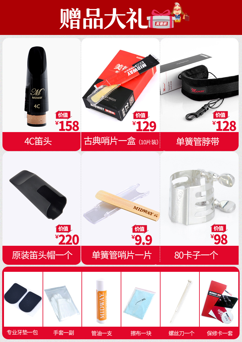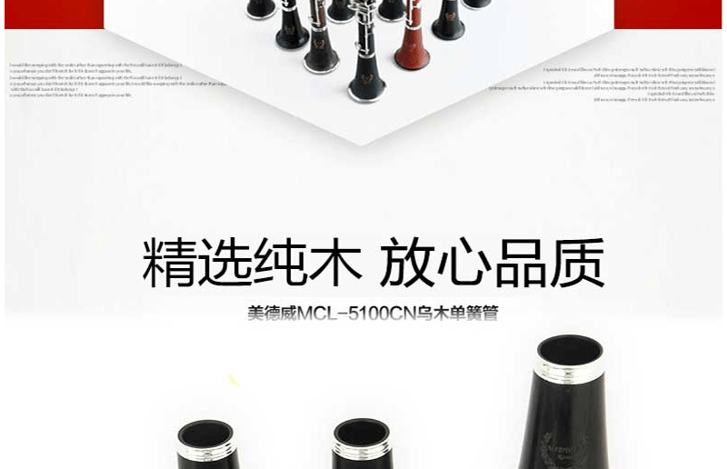 商品名称:单簧管乐器 黑管 降B调 正品 送哨片背带 美德威乐器MCL-5100CN