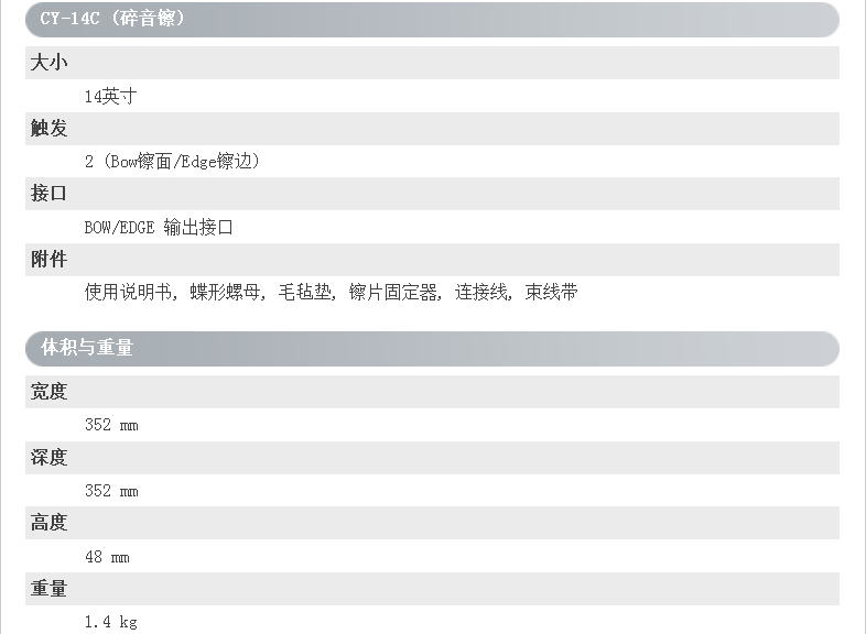商品名称:Roland CY-14C 双触发镲片