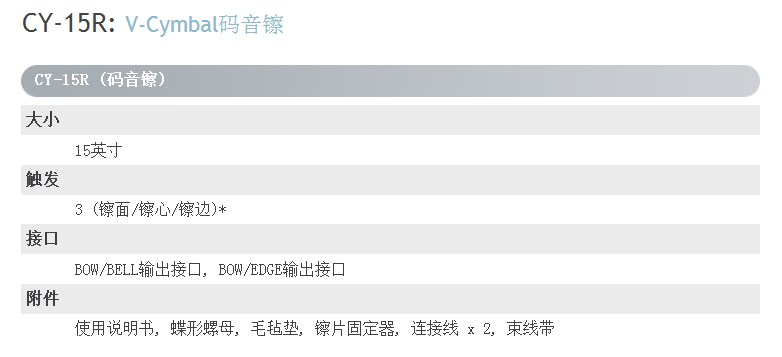 商品名称:Roland CY-15R三触发镲片