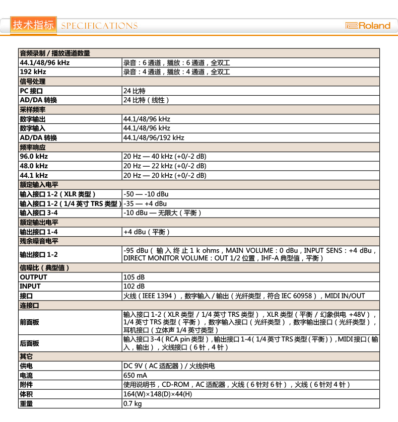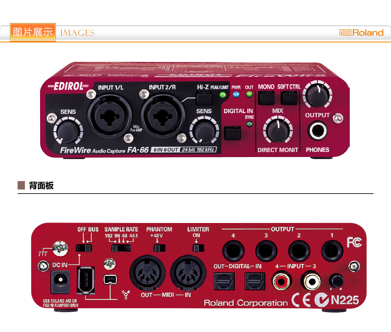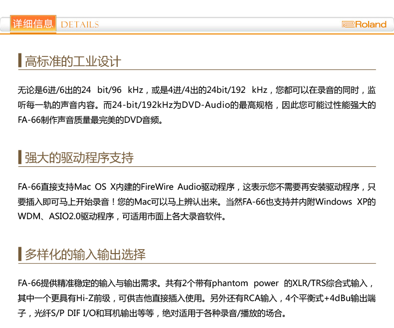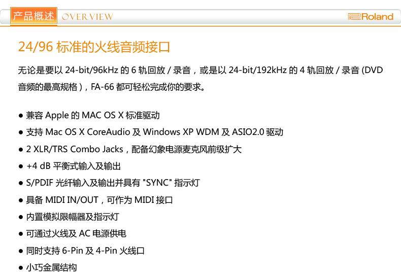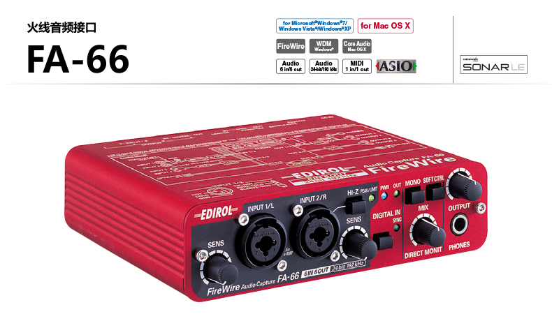 商品名称:Roland FA-66 火线音频接口