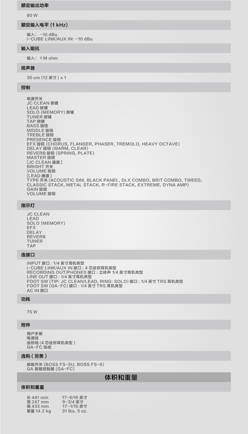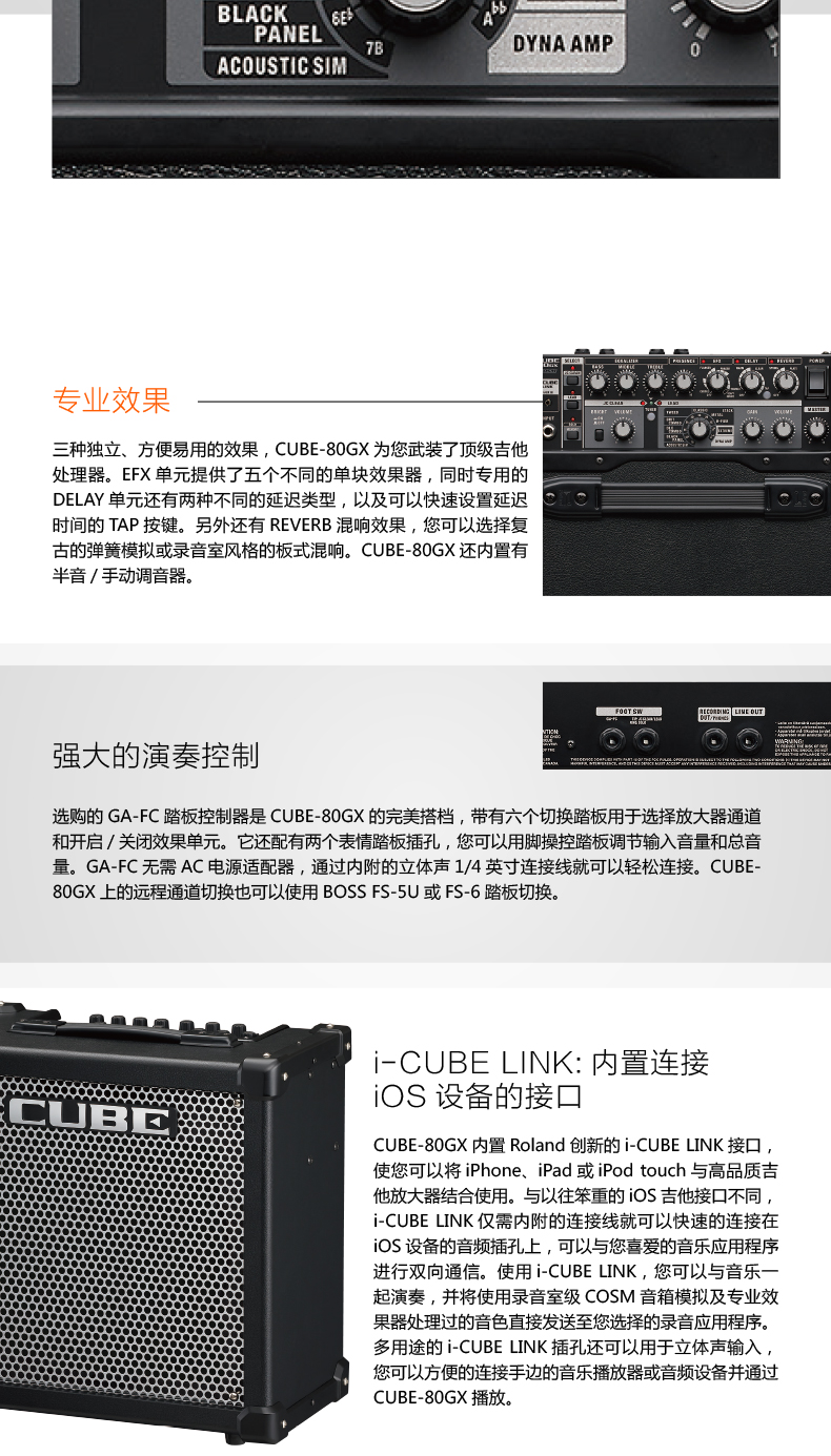 商品名称:罗兰 Roland CUBE-80GX 吉他音箱