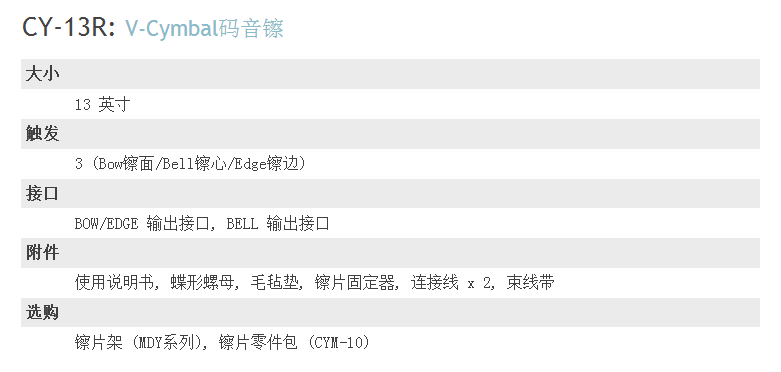 商品名称:Roland CY-13R 三触发镲片