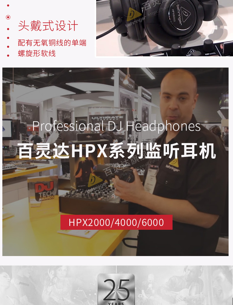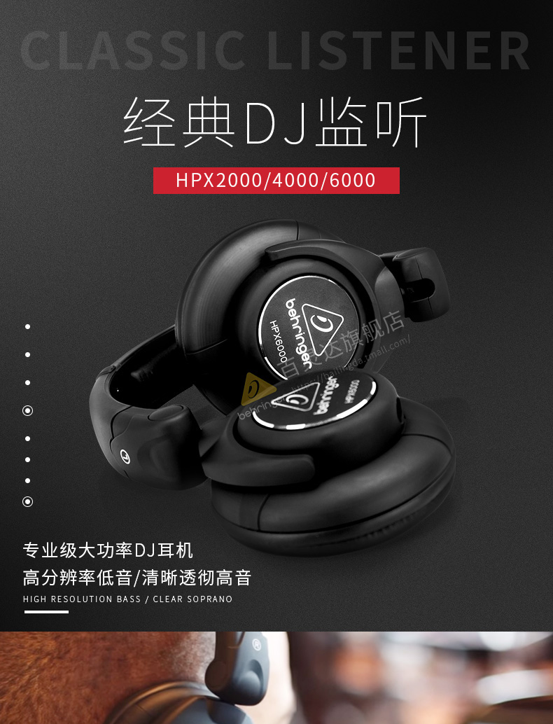 商品名称:百灵达(behringer) HPX2000 HPX4000 HPX6000 封闭式 DJ耳机