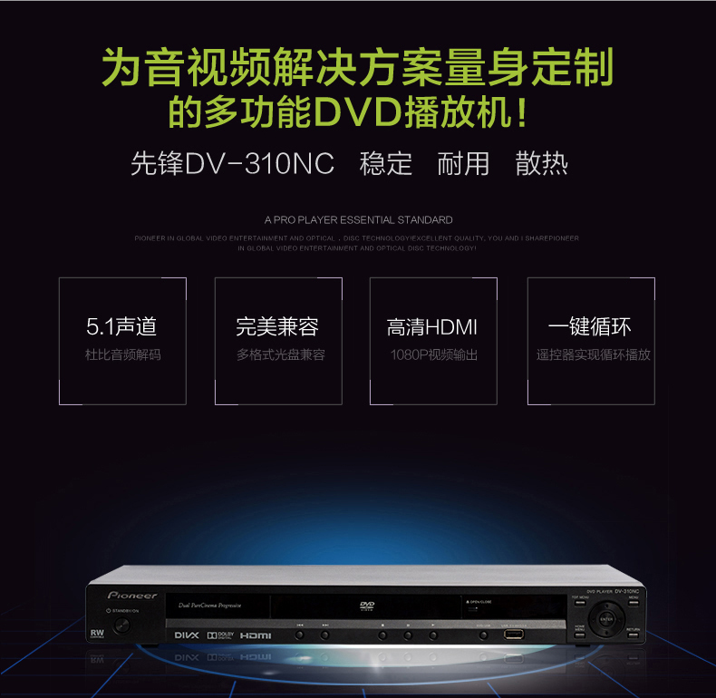 商品名称:Pioneer/先锋 dv-310NC-K DVD播放器