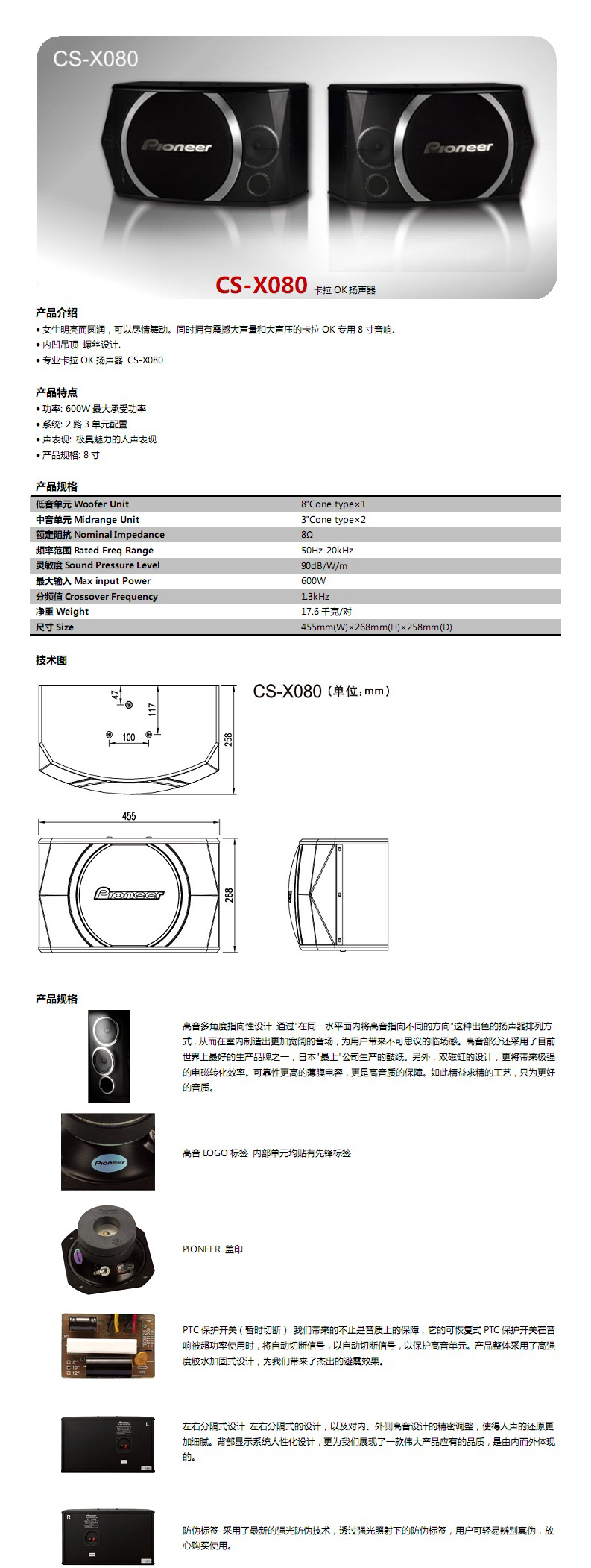商品名称:Pioneer/先锋CS-X080 8寸卡拉OK包房音响 KTV卡包音箱
