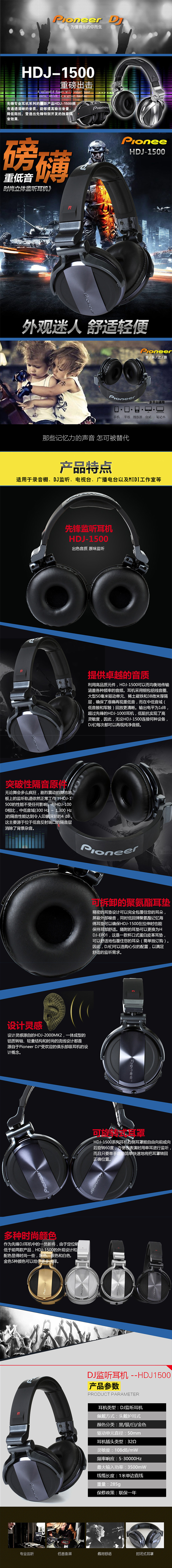 商品名称:Pioneer/先锋 HDJ-1500 头戴式 DJ监听耳机 四种颜色