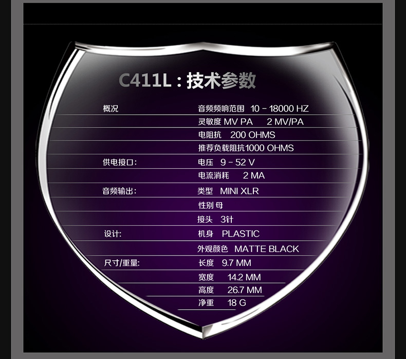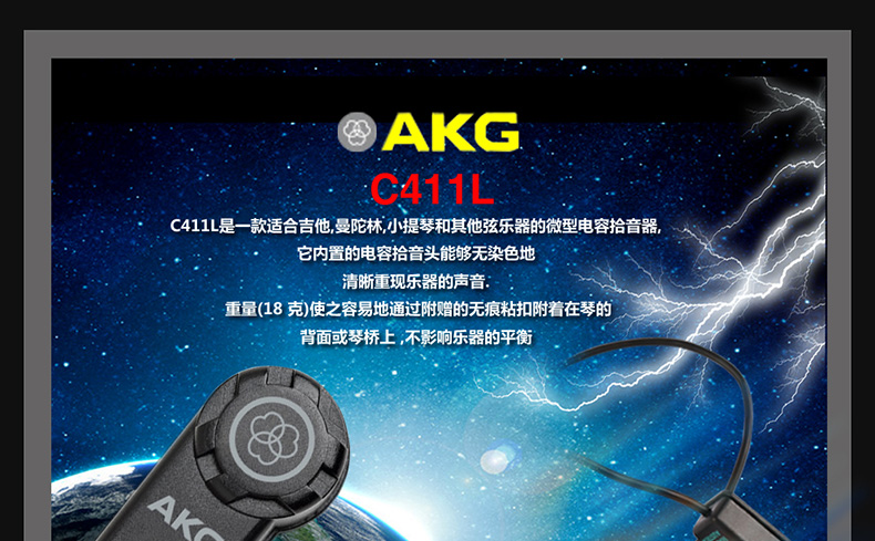 商品名称:AKG/爱科技 C411 L 乐器话筒 电容麦克风 录音 拾音 需幻象供电