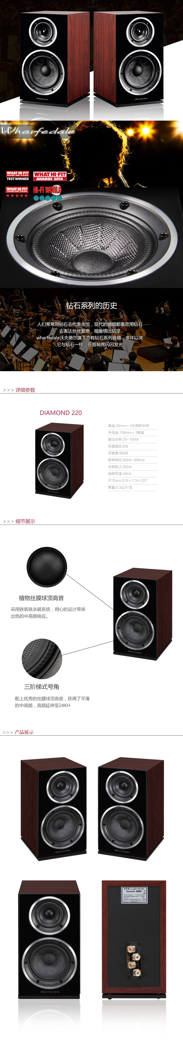 商品名称:乐富豪 Wharfedale/沃夫德尔 Diamond 220 钻石系列书架箱 一对
