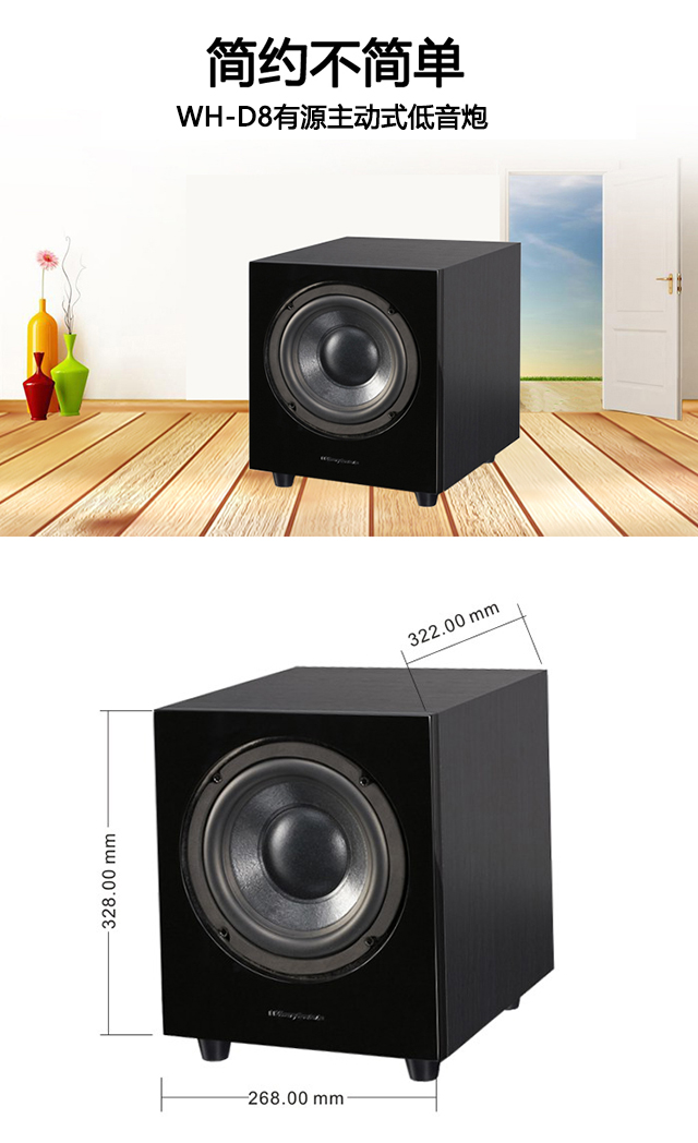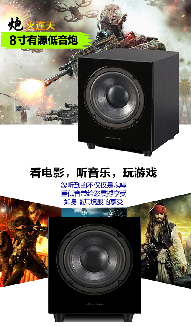 商品名称:乐富豪 Wharfedale/沃夫德尔 WH-D8 主动式低音炮低失真家用黑色