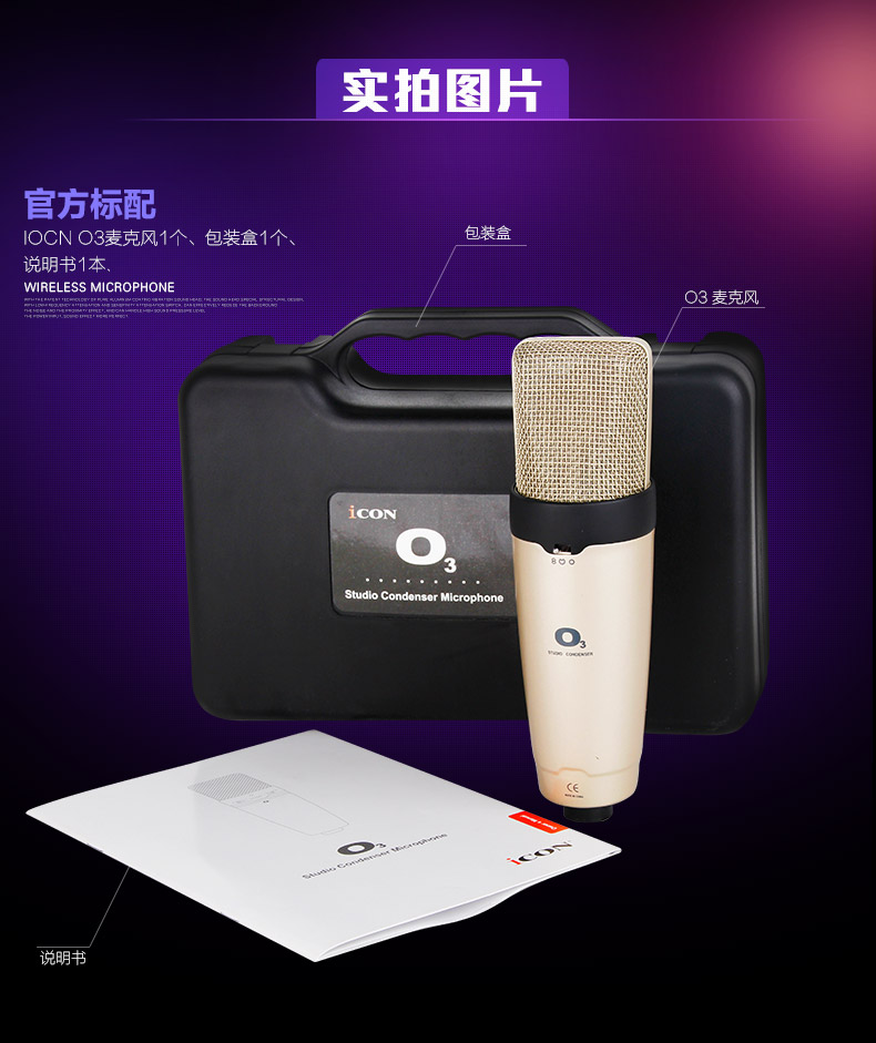 商品名称:ICON O3 电容麦克风声卡套装 主播主持电台配音专业录音话筒