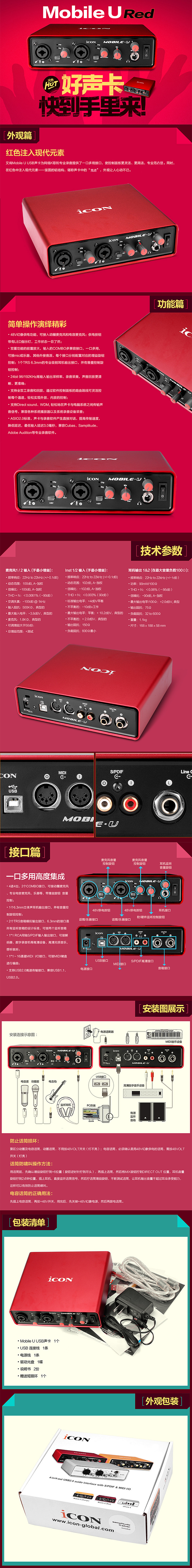 商品名称:艾肯ICON Mobile U 电脑台式机usb网络K歌录音YY主播外置声卡