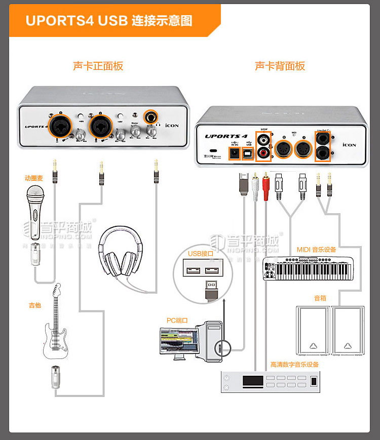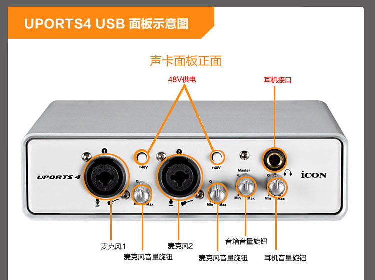 ICON Uports 4套装外置声卡套装yy主播电容麦克风电脑k歌录音声卡