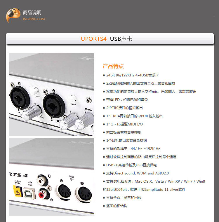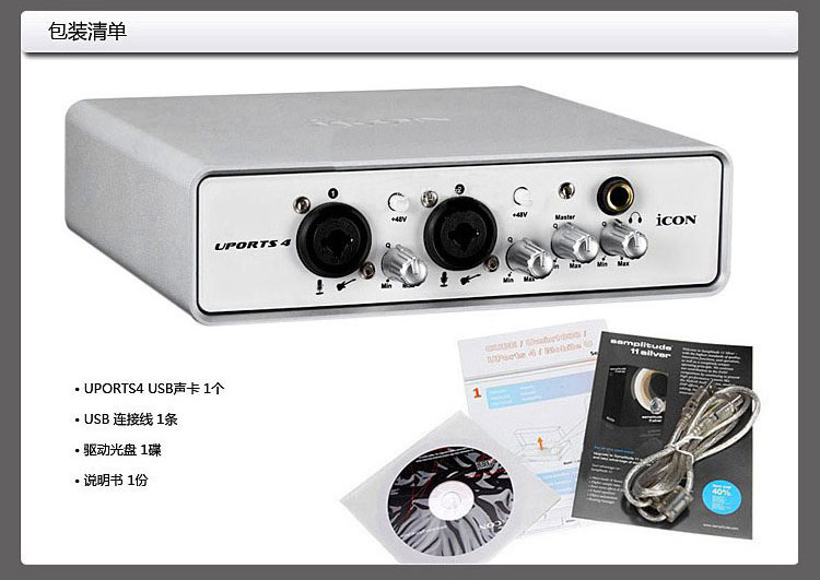 商品名称:ICON Uports 4套装外置声卡套装yy主播电容麦克风电脑k歌录音声卡