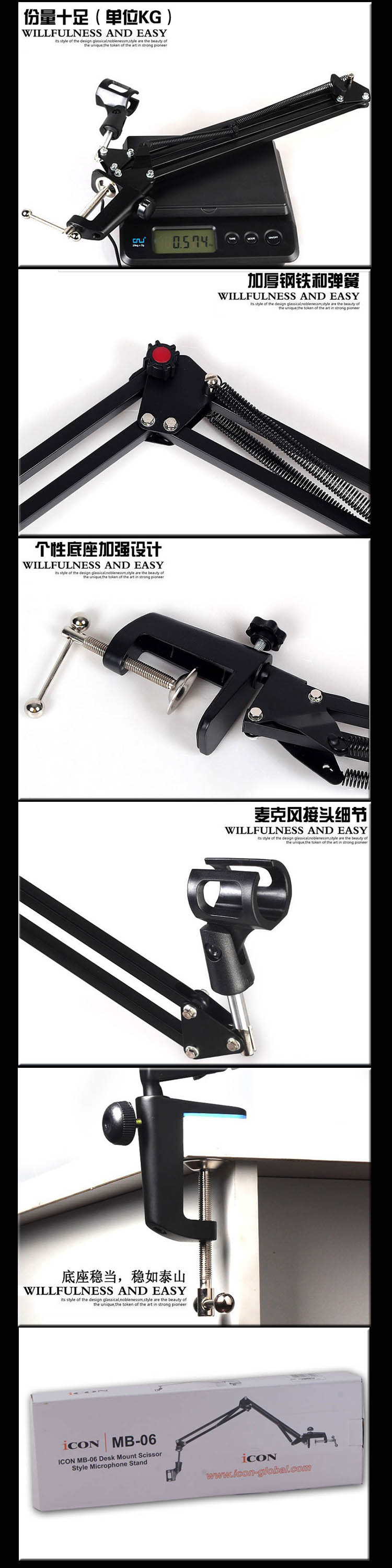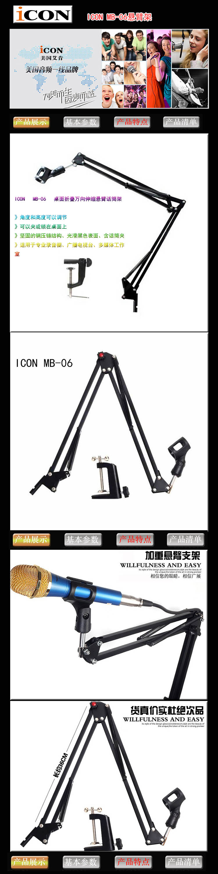 商品名称:ICON MB-06 悬臂支架 桌面折叠万向伸缩悬臂话筒支架 正品保证
