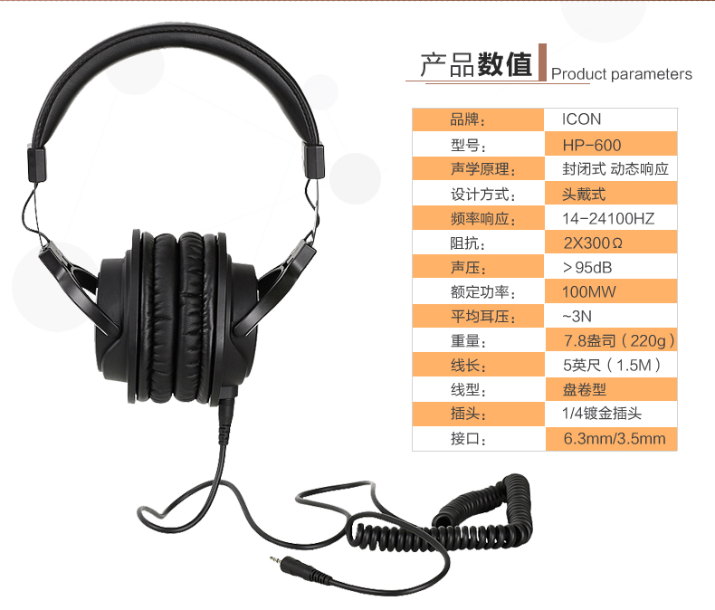 商品名称:ICON HP-600专业录音电脑网络K歌YY主播专用头戴式高端监听耳机