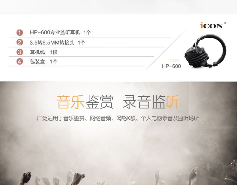 ICON HP-600专业录音电脑网络K歌YY主播专用头戴式高端监听耳机