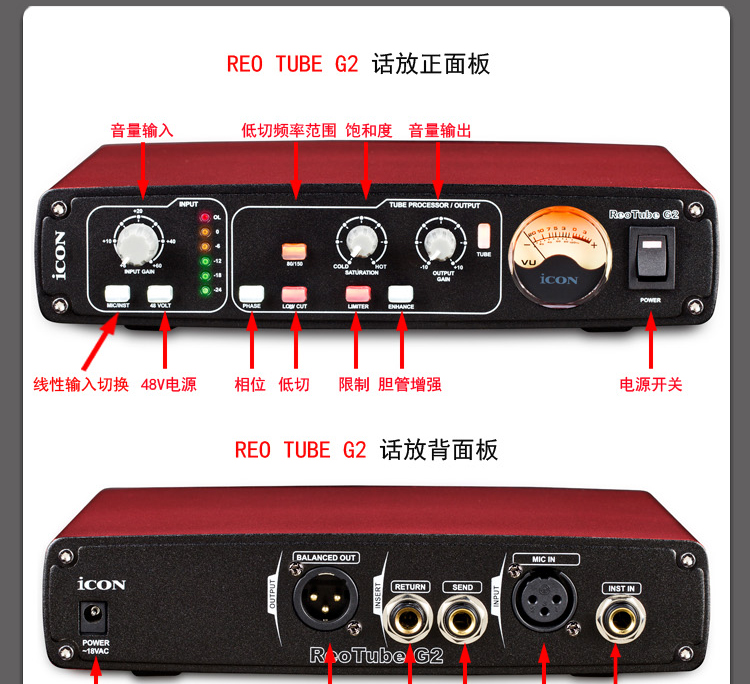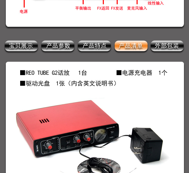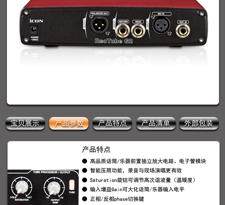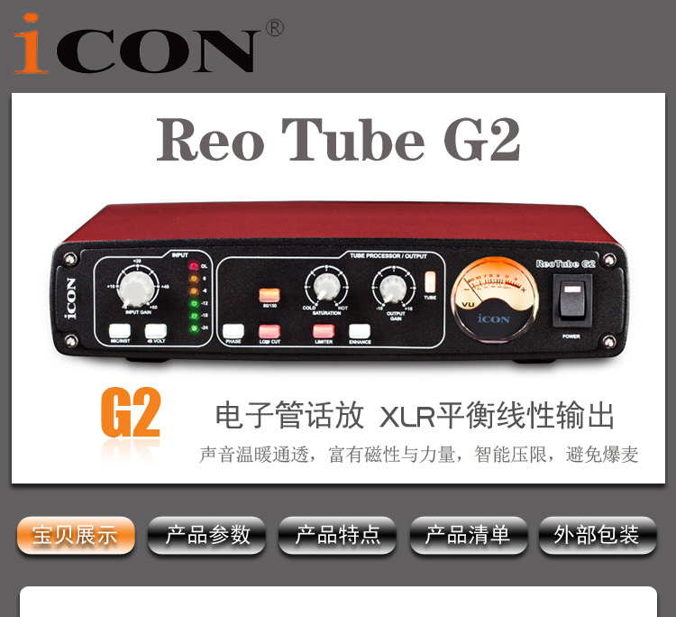 商品名称:ICON Reo Tube G2艾肯专业录音电容麦克风电子管话放 话筒放大器