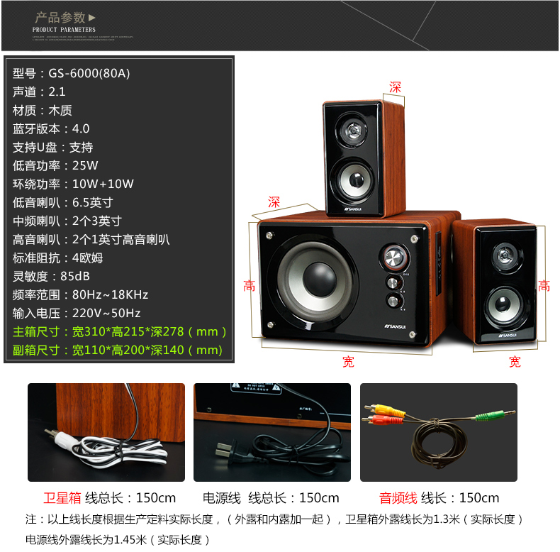 商品名称:Sansui/山水 GS-6000(80A)蓝牙台式电脑多媒体音箱重低音炮音响