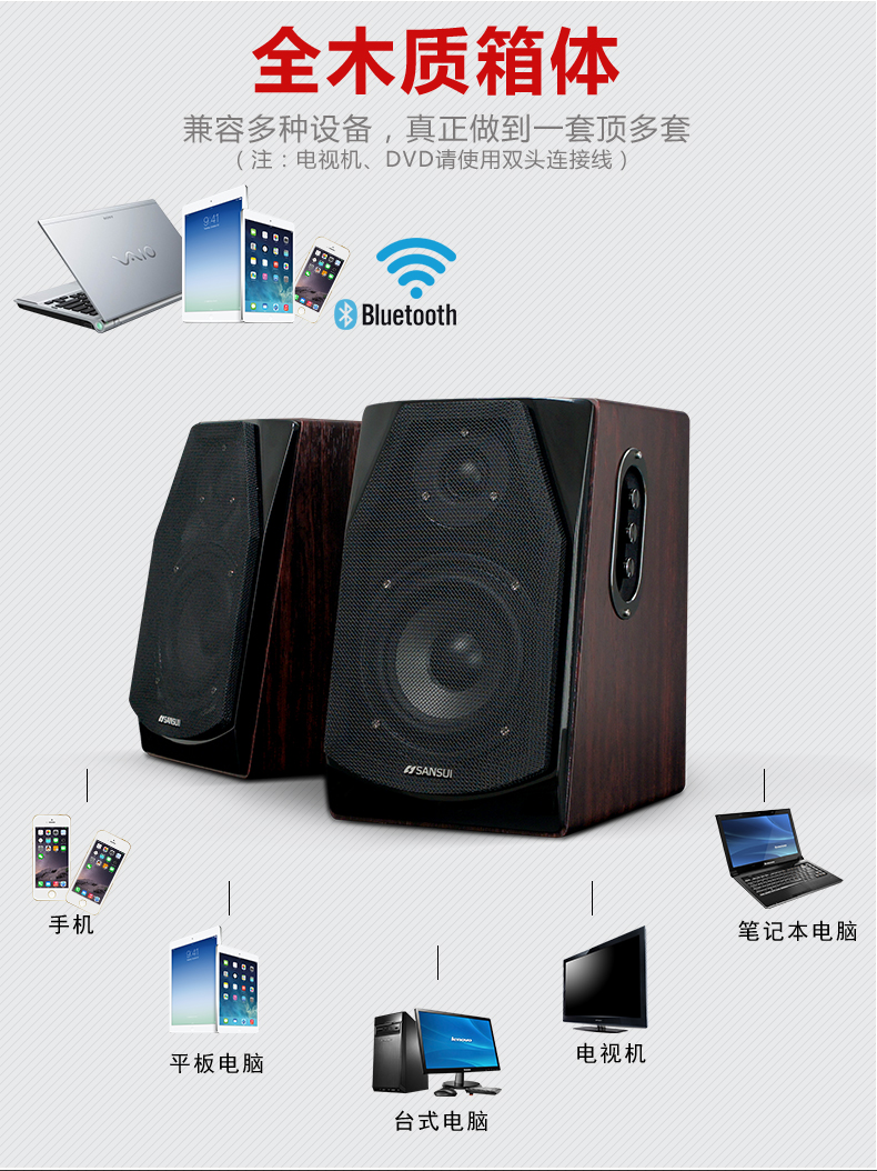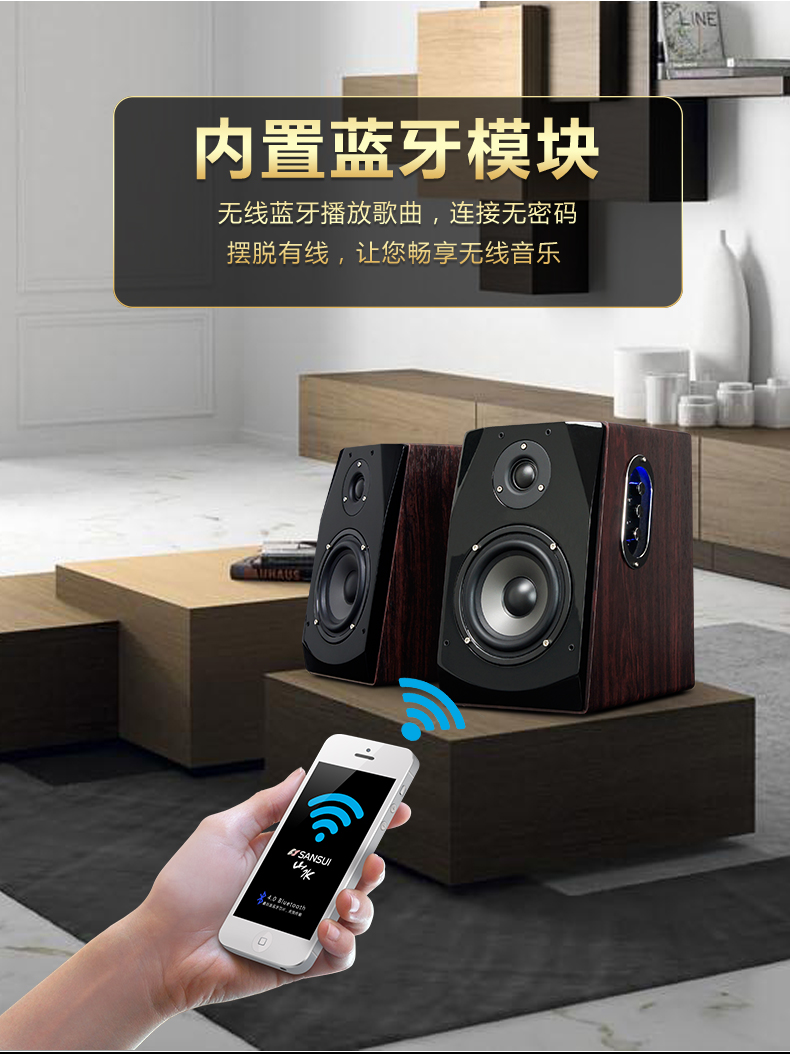 Sansui/山水 S800蓝牙无线音响2.0书架ktv影响台式电脑多媒体音箱