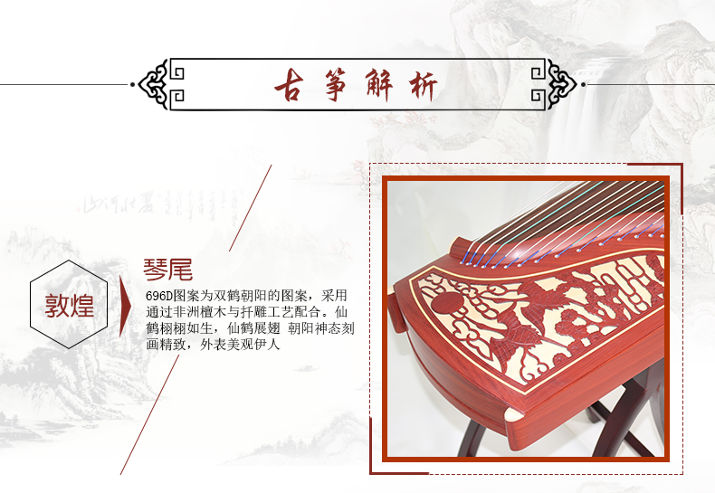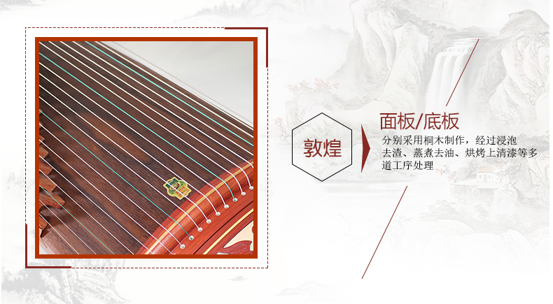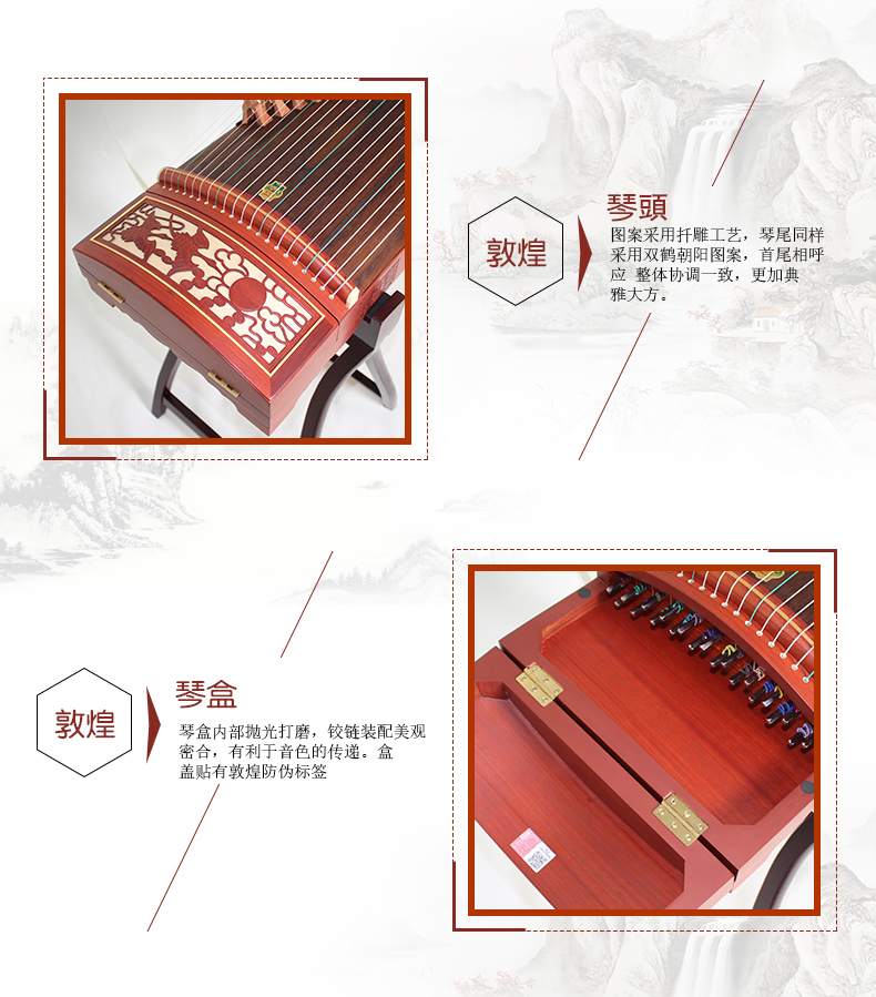 古筝材质具体参数是淘宝系统根据官方旗舰店标准加载,厂家会不定期更换原包装配件及材质属性,请以收到实物为准,并及时拍照片到敦煌打假办验证真伪!