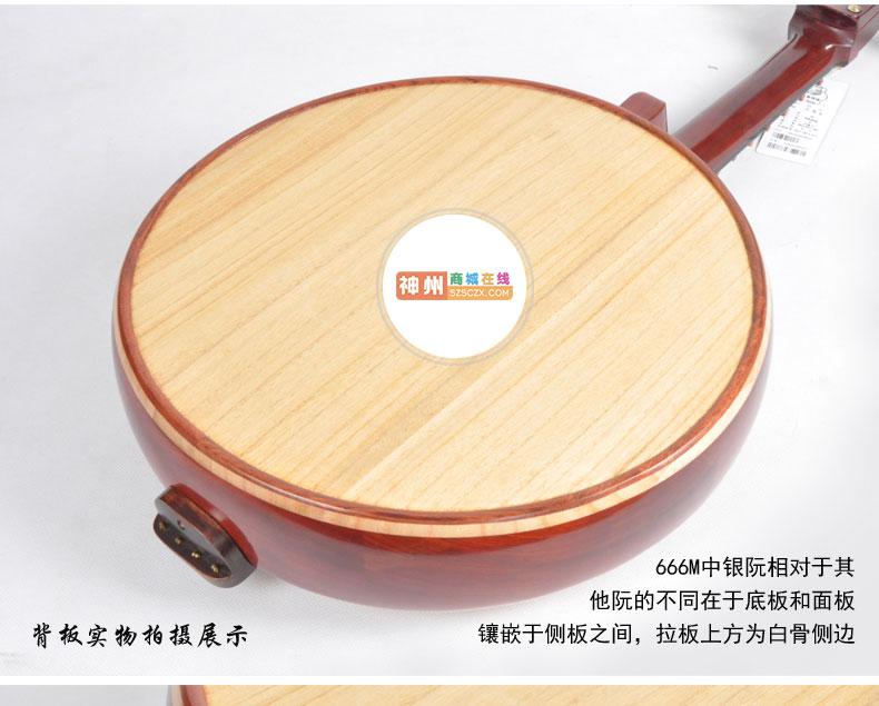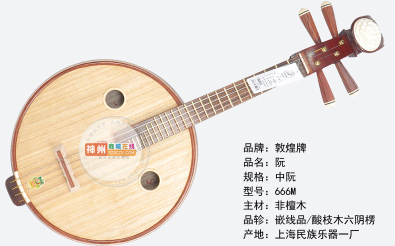 商品名称:敦煌中阮 666M 非檀木 嵌线品/酸枝木六阴楞/牡丹头